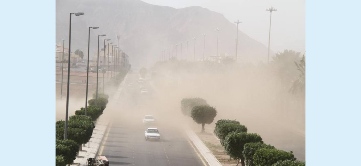 توقّع المركز الوطني للأرصاد في تقريره عن حالة الطقس اليوم، أن يستمر تأثير الرياح النشطة المثيرة للأتربة والغبار على المنطقة الشرقية، والرياض، ونجران، والمدينة المنورة، ومكة المكرمة، تصل إلى شبه انعدام في مدى الرؤية الأفقية على الطريق الساحلي الواصل لجازان، في حين ما تزال الفرصة مهيأة لتكوّن السحب الرعدية الممطرة المصحوبة برياح نشطة على منطقتي جازان وعسير.