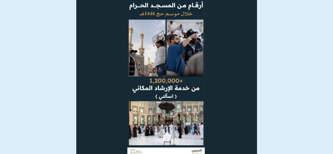 وأفادت الهيئة بأن عدد المستفيدين من خدمة الإرشاد المكاني "اسألني" خلال موسم حج 1446هـ بلغ أكثر من مليون و200 ألف مستفيد، وأسهمت الخدمة في تسهيل وصولهم وتنقلهم في البيت العتيق، وتحديد مواقع الشعائر الدينية والمعالم الرئيسة، بما فيها صحن المطاف ومبنى المسعى، وكيفية الوصول إليها عبر مسارات حركة مباشرة، يتمكن من خلالها ضيف الرحمن من تحديد موقعه الفعلي وتحديد وجهته المطلوبة، كما تتيح "الخريطة التفاعلية الرقمية للإرشاد المكاني" التعرف على مواقع الخدمات في المسجد الحرام بعدة لغات، وتشمل هذه المواقع: مكاتب الإرشاد، ومواقع توزيع العربات، ومكاتب المفقودات، ومواقع رعاية التائهين، إضافة إلى المراكز الصحية.