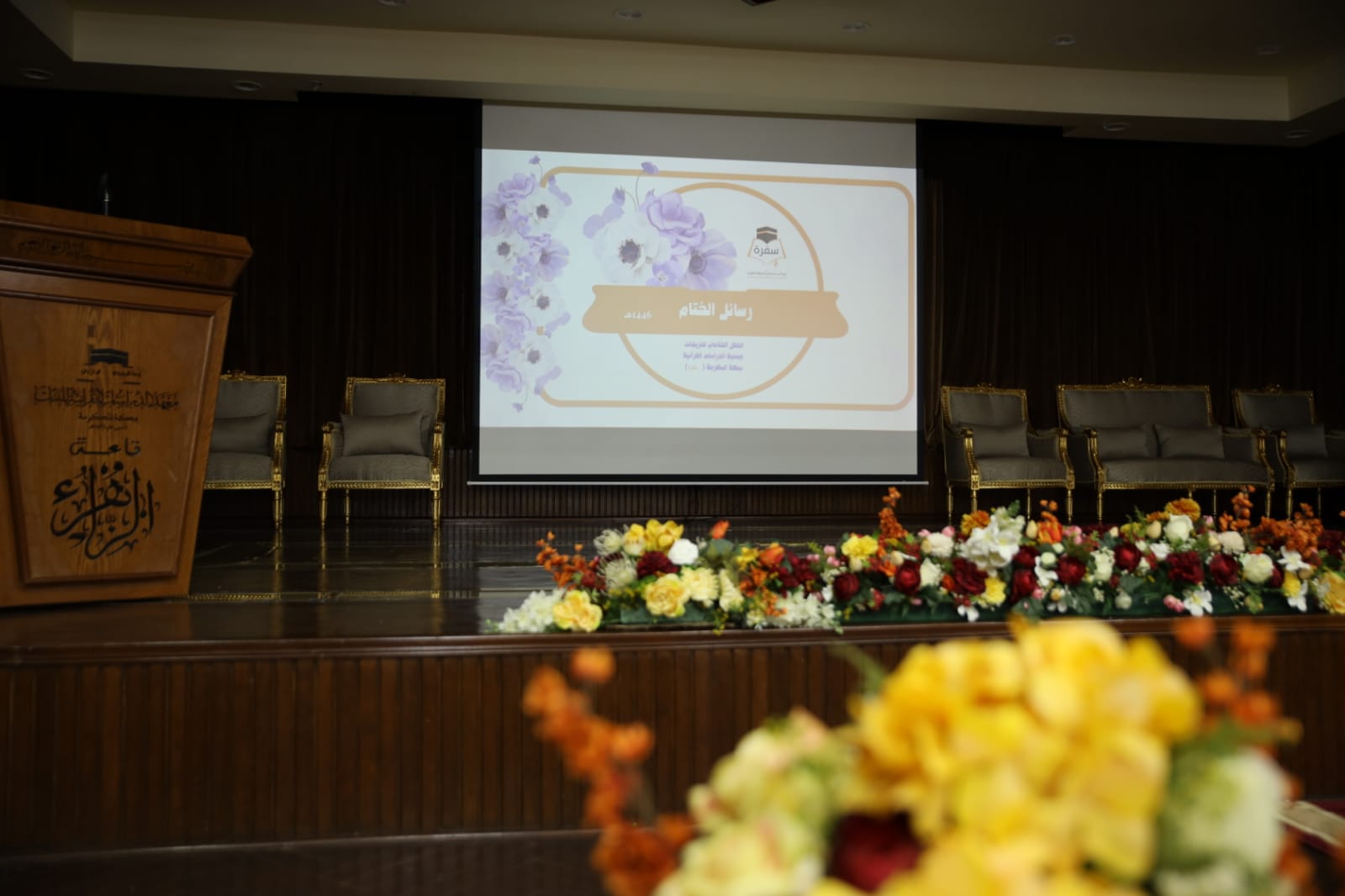 احتفت جمعية الدراسات القرآنية بمكة المكرمة (سَفَرَة) صباح اليوم الأربعاء 1446/12/22هـ الموافق 2025/6/18م بتخريج طالباتها للعام 1446هـ برعاية مجلس إدارة الجمعية وحضور عدد من عضوات الجمعية العمومية بالإضافة إلى منسوبات الجمعية ووالدات الخريجات وعضوات من فرع وزارة الشؤون الإسلامية والدعوة والإرشاد بمكة المكرمة حيث تُشرف الوزارة على برامج الجمعية فنياً وبلغ عدد الخريجات لهذا العام (338) خرّيجة كإنجاز تفتخر به الجمعية ، منهن مجازتين بقراءة الإمام عاصم و (28) خاتمة بالقراءات العشر و (11) خاتمة بالقراءات السبع و(139) معلّمة للقرآن الكريم منهن (75) معلّمة ختمن القرآن الكريم كاملاً في الجمعية ، بالإضافة إلى تخريج (158) خاتمة للقرآن للكريم من مختلف برامج الجمعية ، ليصبح إجمالي عدد الخريجات الخاتمات (260) خاتمة .