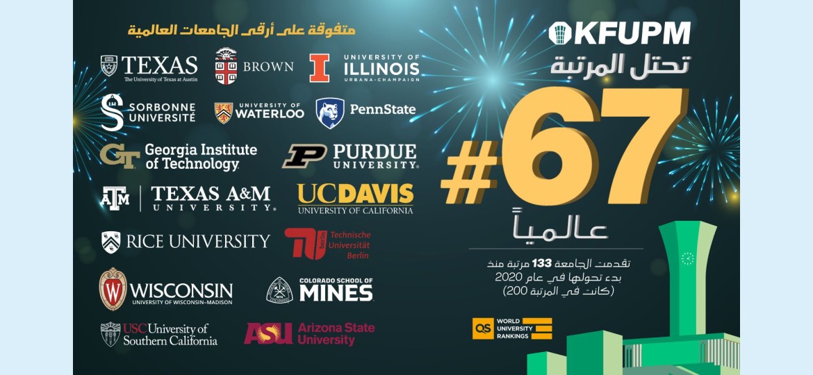 حققت جامعة الملك فهد للبترول والمعادن تقدماً عالمياً جديدًا بدخولها قائمة أفضل 100 جامعة على مستوى العالم، حيث تقدمت إلى المرتبة 67 عالميًا، وفقًا لتصنيف "كيو إس" (QS World University Rankings) لعام 2025، ويُعد هذا التقدم ثمرة مباشرة لمسار التحول الاستراتيجي الذي أطلقته الجامعة منذ عام 2020، حيث انتقلت خلال خمسة أعوام من المرتبة 200 إلى المرتبة 67.