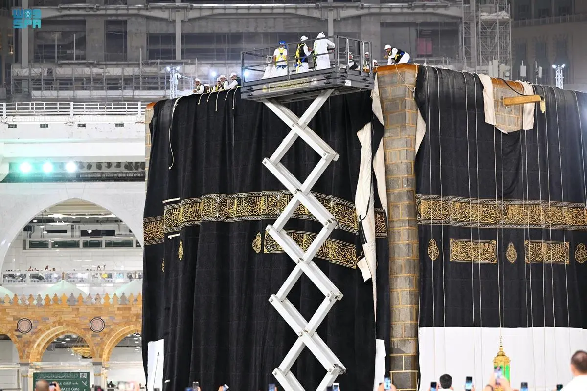 قامت الرئاسة العامة لشؤون المسجد الحرام والمسجد النبوي - اليوم - باستبدال كسوة الكعبة المشرفة كما جرت العادة السنوية، بإشراف من معالي الرئيس العام لشؤون المسجد الحرام والمسجد النبوي الشيخ الدكتور عبدالرحمن بن عبدالعزيز السديس، وذلك من خلال فريق عمل محدد من مجمع الملك عبدالعزيز لكسوة الكعبة المشرفة، حيث بدأ الفريق بتفكيك الكسوة القديمة وتركيب الجديدة، ثم تثبيتها في أركان الكعبة وسطحها.