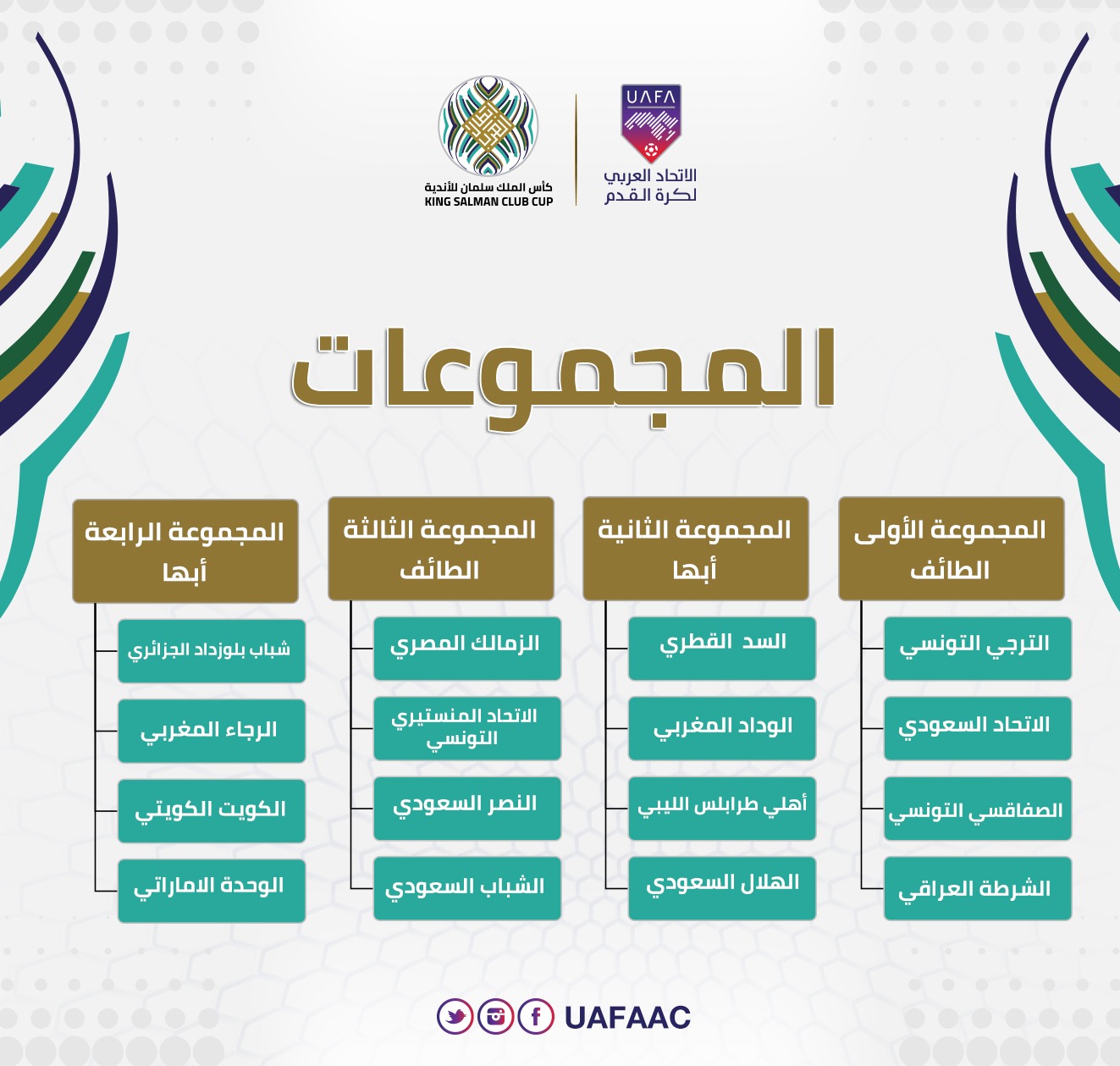 وتقام البطولة في المملكة انطلاقًا من دور المجموعات بعد نهاية مباريات تصفيات الدورين الأول والثاني، حيث تضم المجموعة الأولى الاتحاد السعودي، الترجي التونسي، الصفاقسي التونسي، الشرطة العراقي.