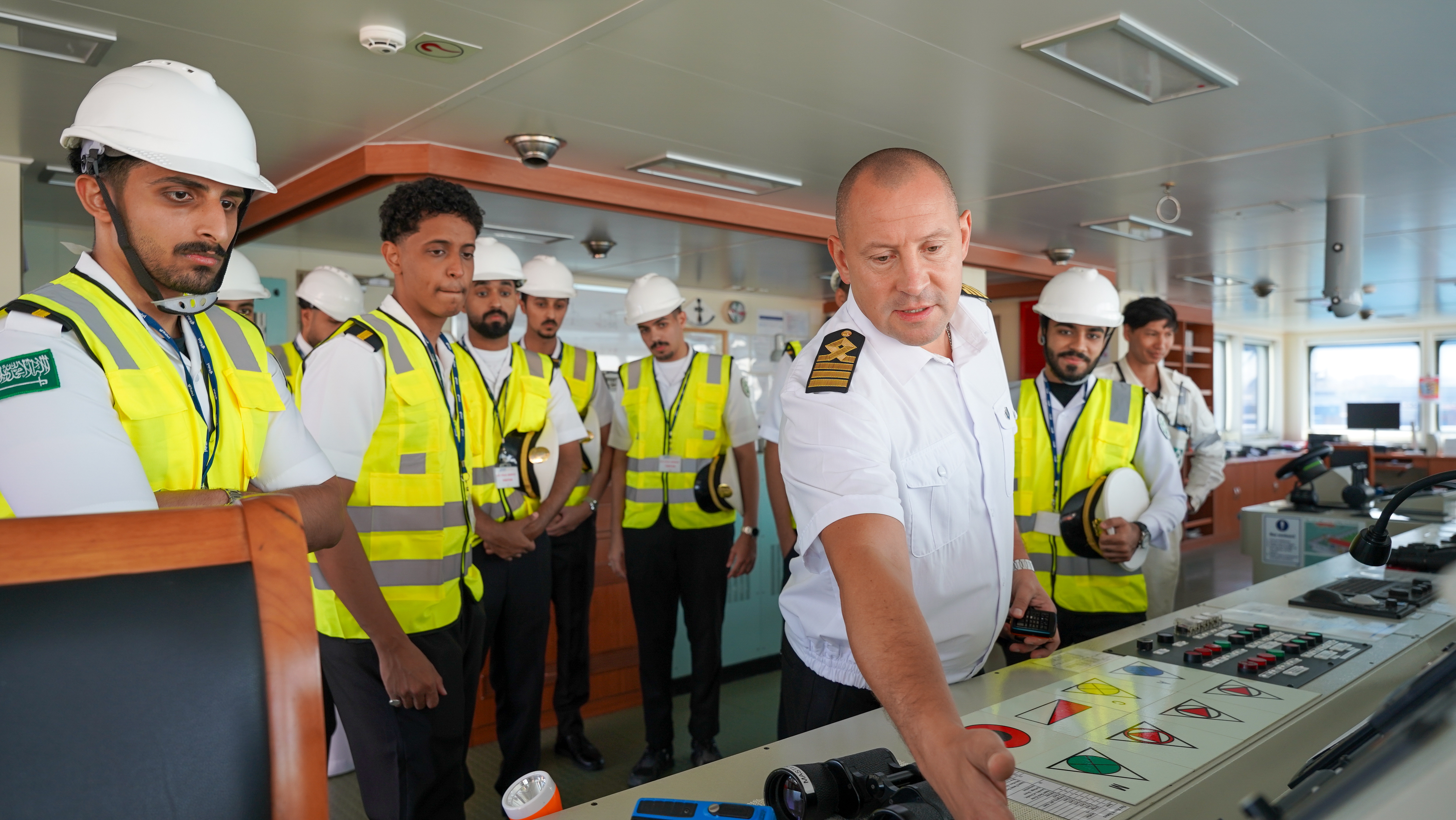* غرفة القيادة: حيث تعرّف الطلاب على أنظمة الملاحة الحديثة، وآليات توجيه السفينة والتواصل مع محطات المراقبة البحرية.