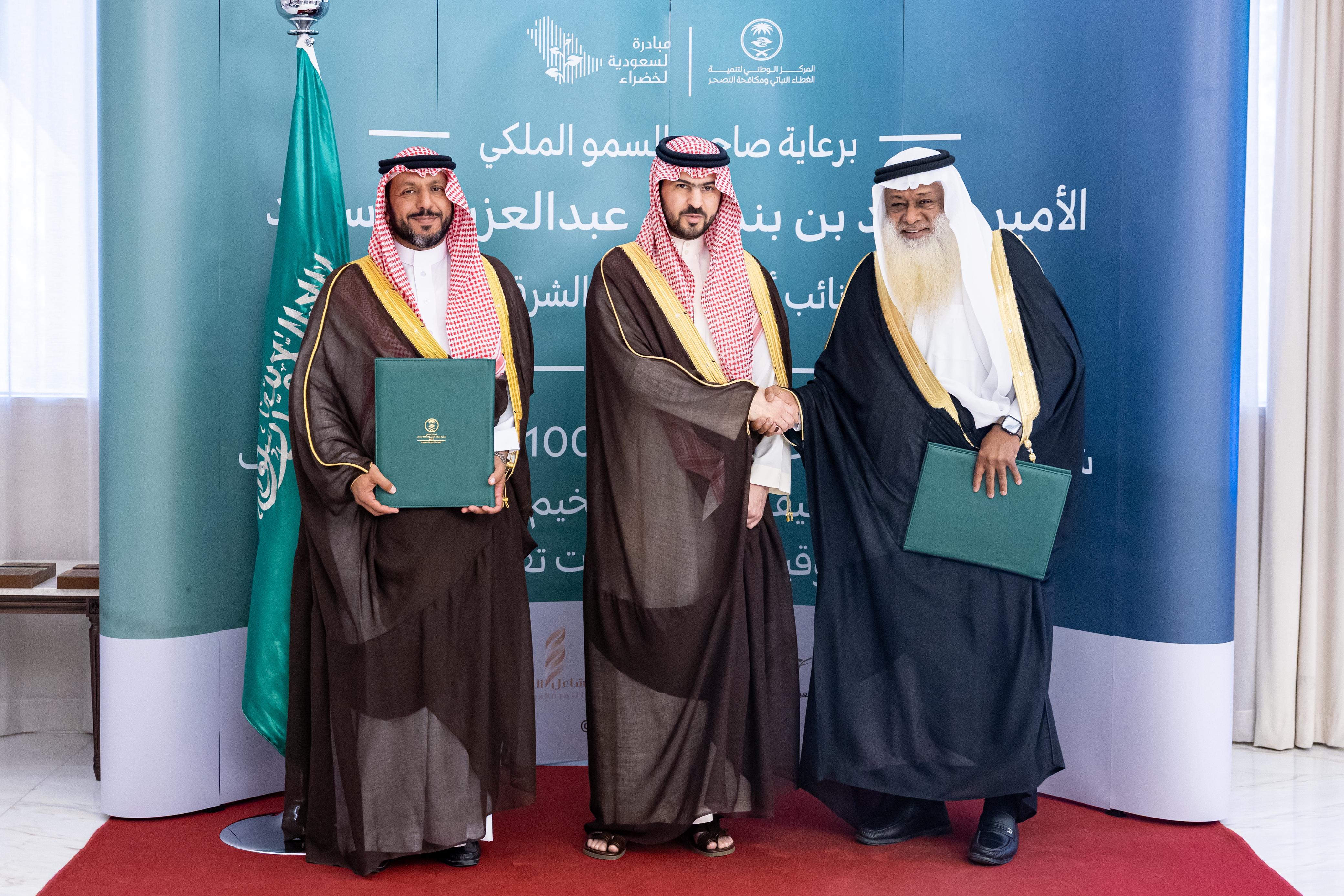 كما شهد سموه توقيع عدد من مذكرات التفاهم بين المركز الوطني لتنمية الغطاء النباتي وعدد من الجمعيات والفِرَق التطوعية للبحث والإنقاذ.