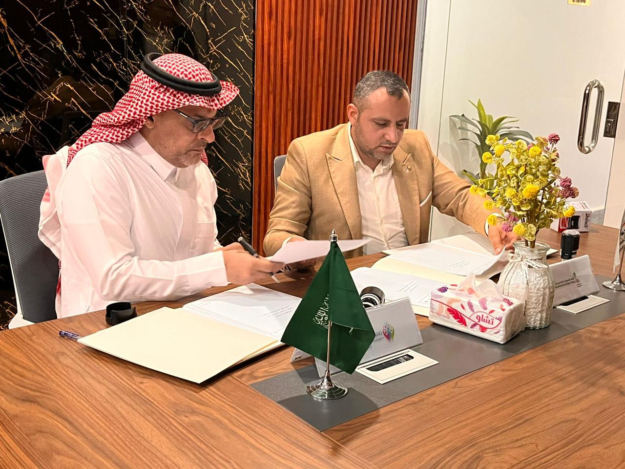 وقد وقع الاتفاقية الأستاد العالي العربي بصفته رئيس مجلس المديرين بالمعهد والأستاذ عبدالرحمن العيد المدير التنفيذي للجمعية .