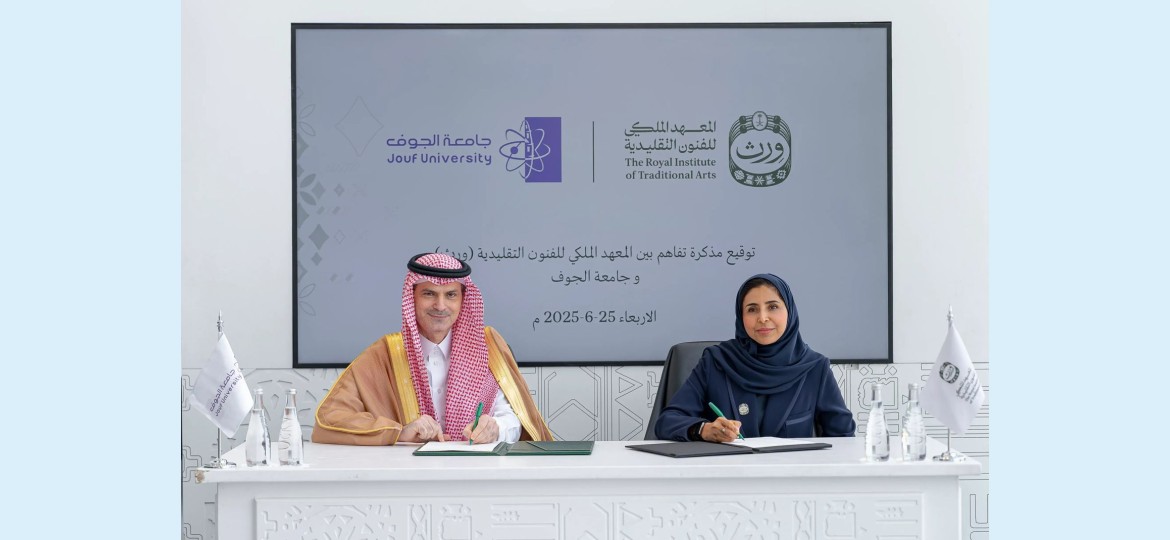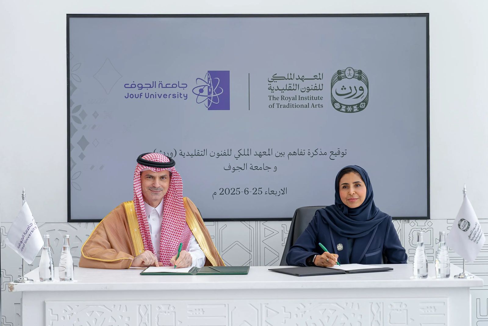 وقعت جامعة الجوف مذكرة تفاهم مع المعهد الملكي للفنون التقليدية (ورث) بهدف تطوير أطر التعاون المشترك في مجالات التدريب والتعليم وتنمية القدرات البشرية والبحث العلمي وتنظيم الفعاليات الثقافية وذلك في سياق دعم التكامل بين المؤسسات التعليمية والثقافية وتحقيقا لمستهدفات "عام الحرف اليدوية 2025"