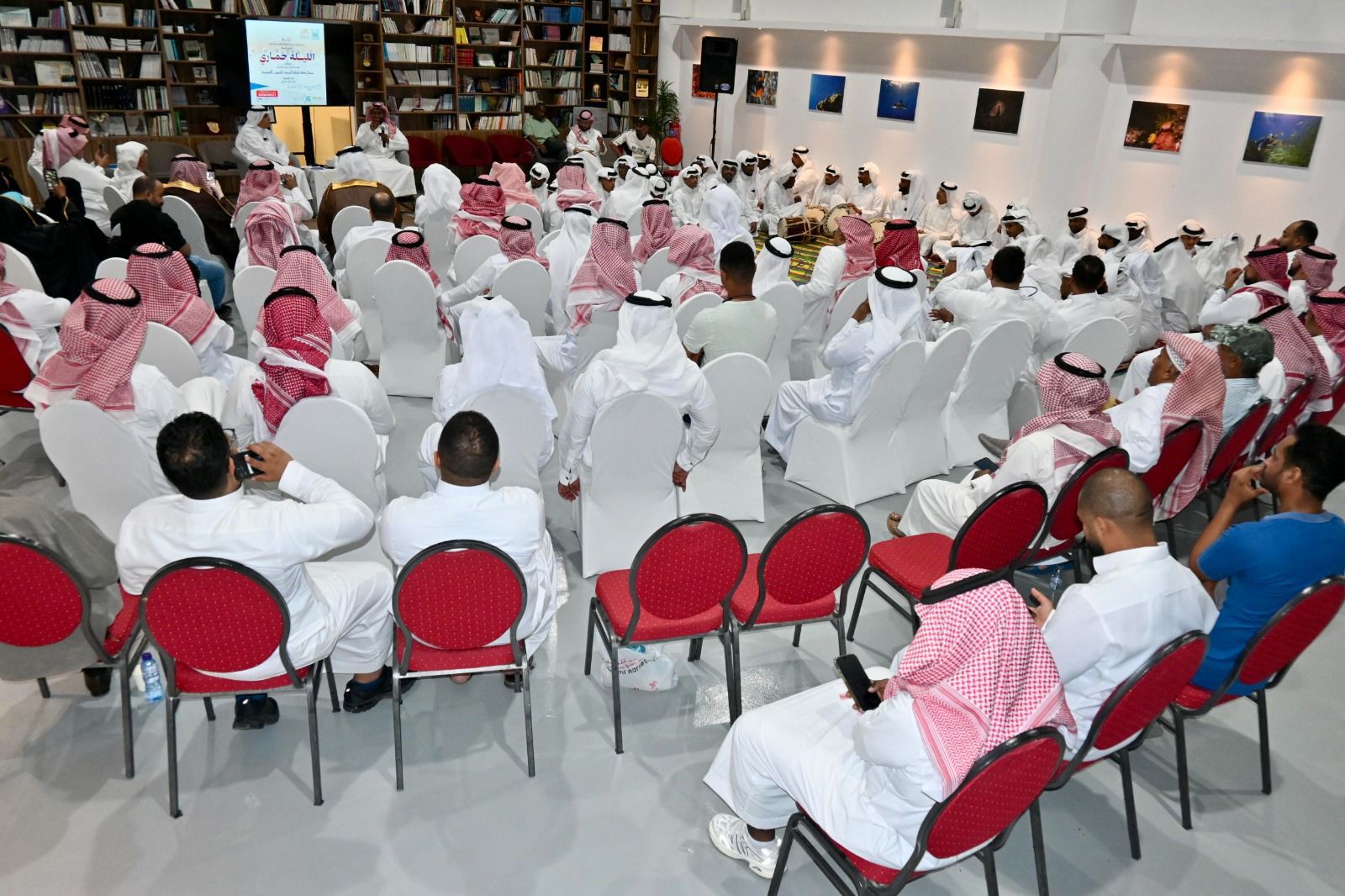 أحيت جمعية الثقافة والفنون بالدمام مساء أمس الثلاثاء ليلة " فن الخماري " أحد الفنون الشعبية بالمنطقة الشرقية، قدمها الباحث عادل بن عيسى العميري، وهو أحد المهتمين بفنون المنطقة الشرقية الشعبية القديمة وله اسهامات مضيئة، من خلال توثيق الكثير من الروايات والقصص والاحاديث التي تحكي ذاكرة الفنون الشعبية، وأدارها خالد الخالدي.