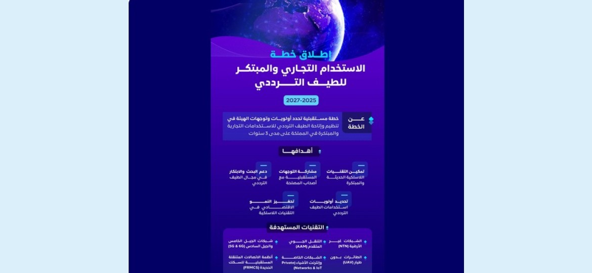 أعلنت  هيئة الاتصالات  والفضاء والتقنية عن إطلاق خطتها للاستخدام التجاري والمبتكر للطيف الترددي (2025–2027).