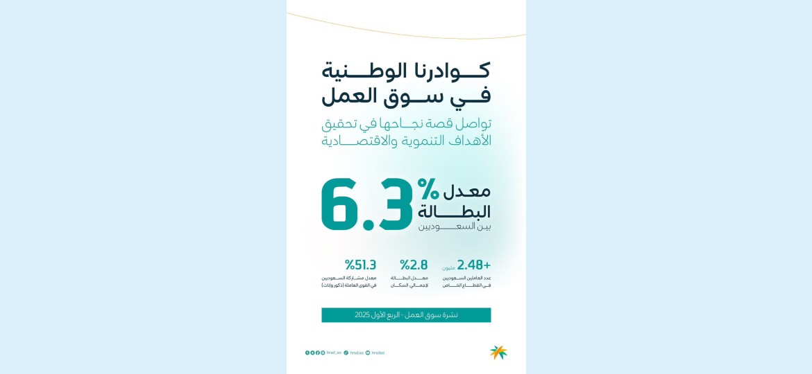تحول لافت في  سوق العمل  السعودي انخفضت معه معدلات البطالة بين السعوديين لمستويات تاريخية بحسب النشرة المخصصة لسوق العمل خلال الربع الأول من العام الجاري 2025..