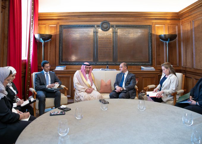 حضر اللقاء، نائب رئيس البعثة لدى المملكة المتحدة بندر بن سلمان السديري.