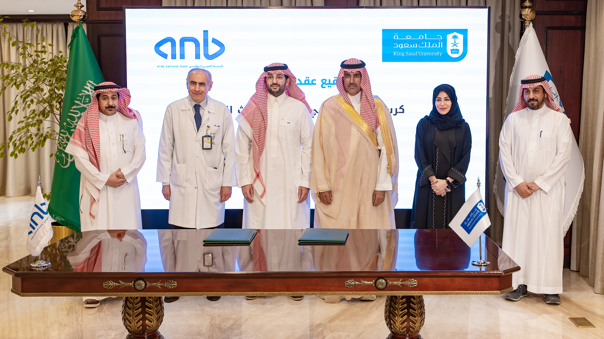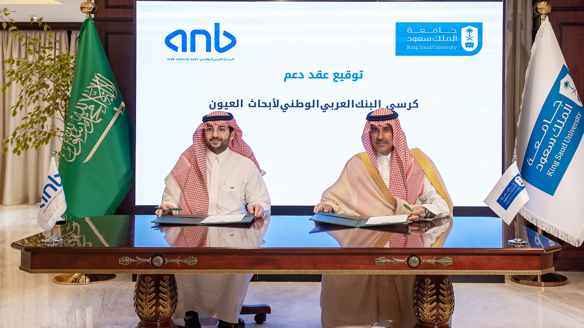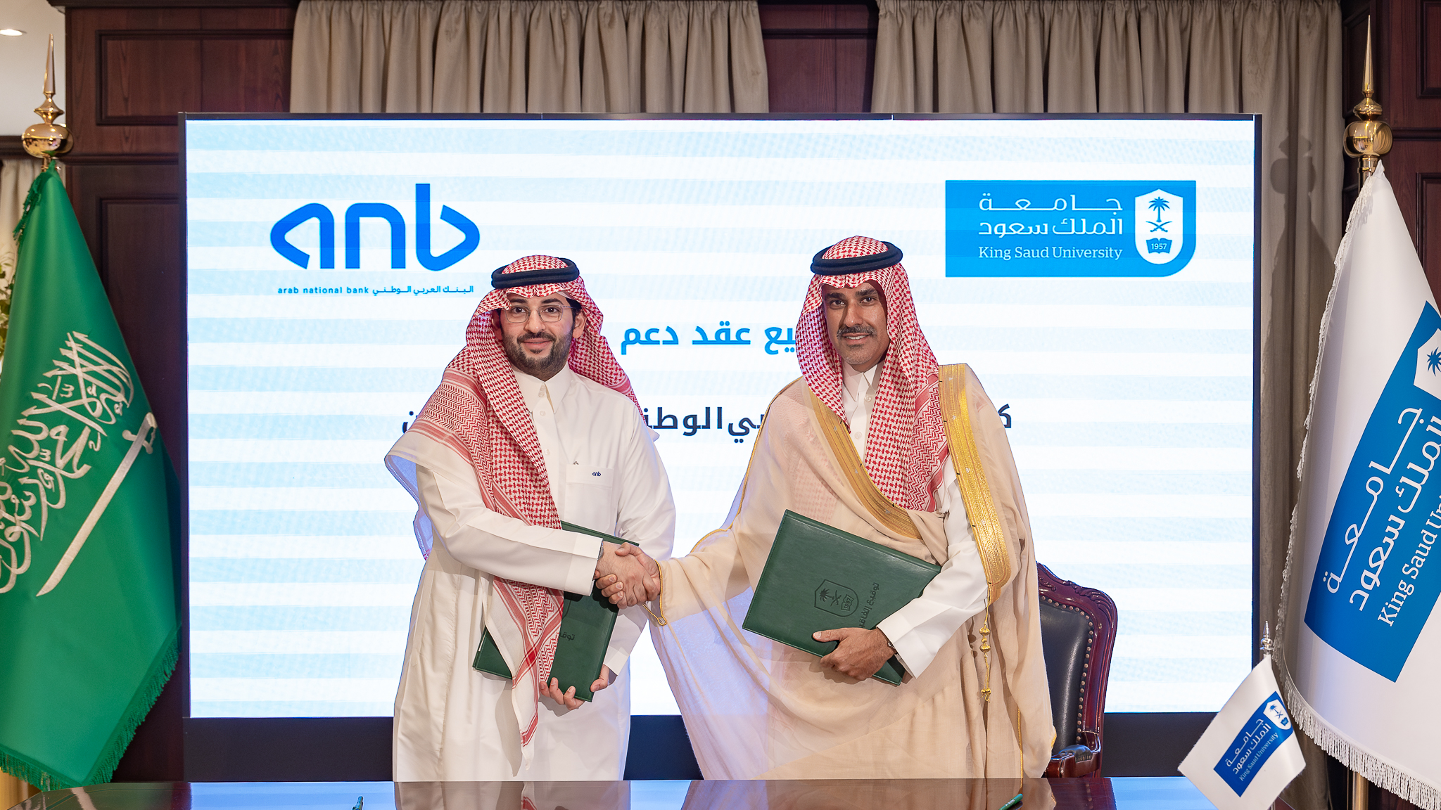 وقد جرى توقيع اتفاقية الدعم في مقر الجامعة، بحضور نائب رئيس جامعة الملك سعود للدراسات العليا والبحث العلمي الدكتور يزيد آل الشيخ،والرئيس التنفيذي لمجموعة التجزئة المصرفية في البنك العربي الوطني الأستاذ خالد الراشد، وعدد من المسؤولين من كلا الجانبين.