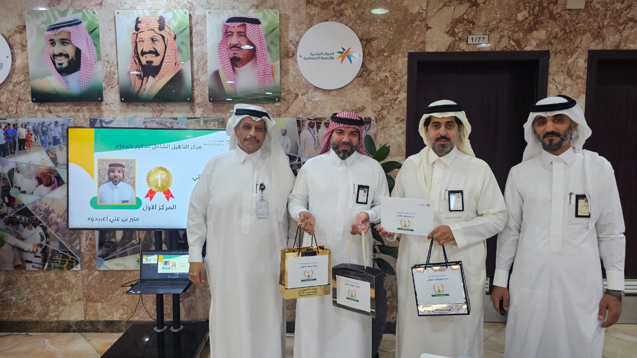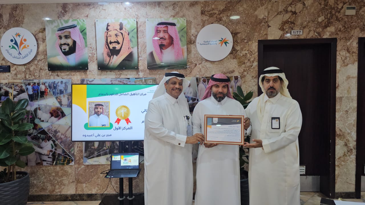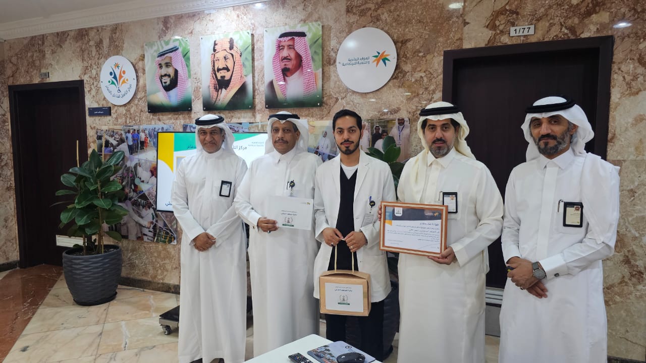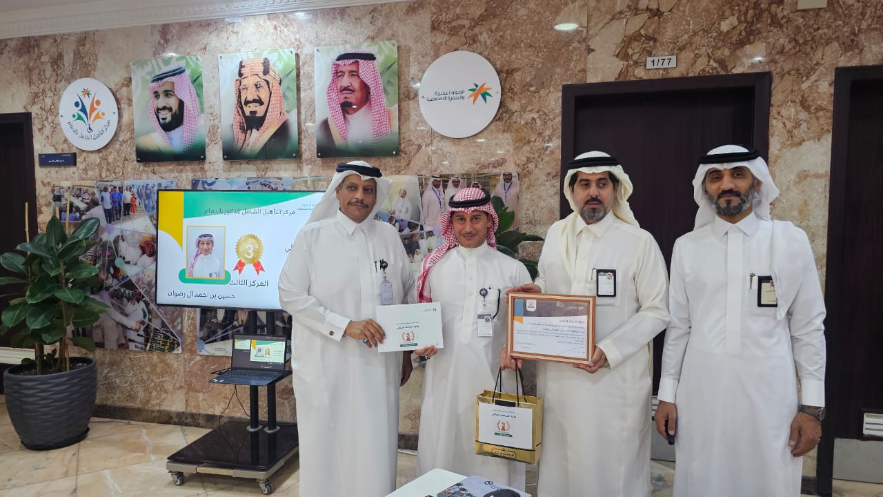بدوره كرم مدير المركز الأستاذ محمد بن علي آل بحير ، ونائبة الأستاذ محمد بن هادي بالحارث الفايزين بالجائزة والتي يشرف عليها رئيس وحدة الموارد البشرية أ. نزار الياسين بمشاركة وحدة العلاقات العامة أ. محمد المياد.