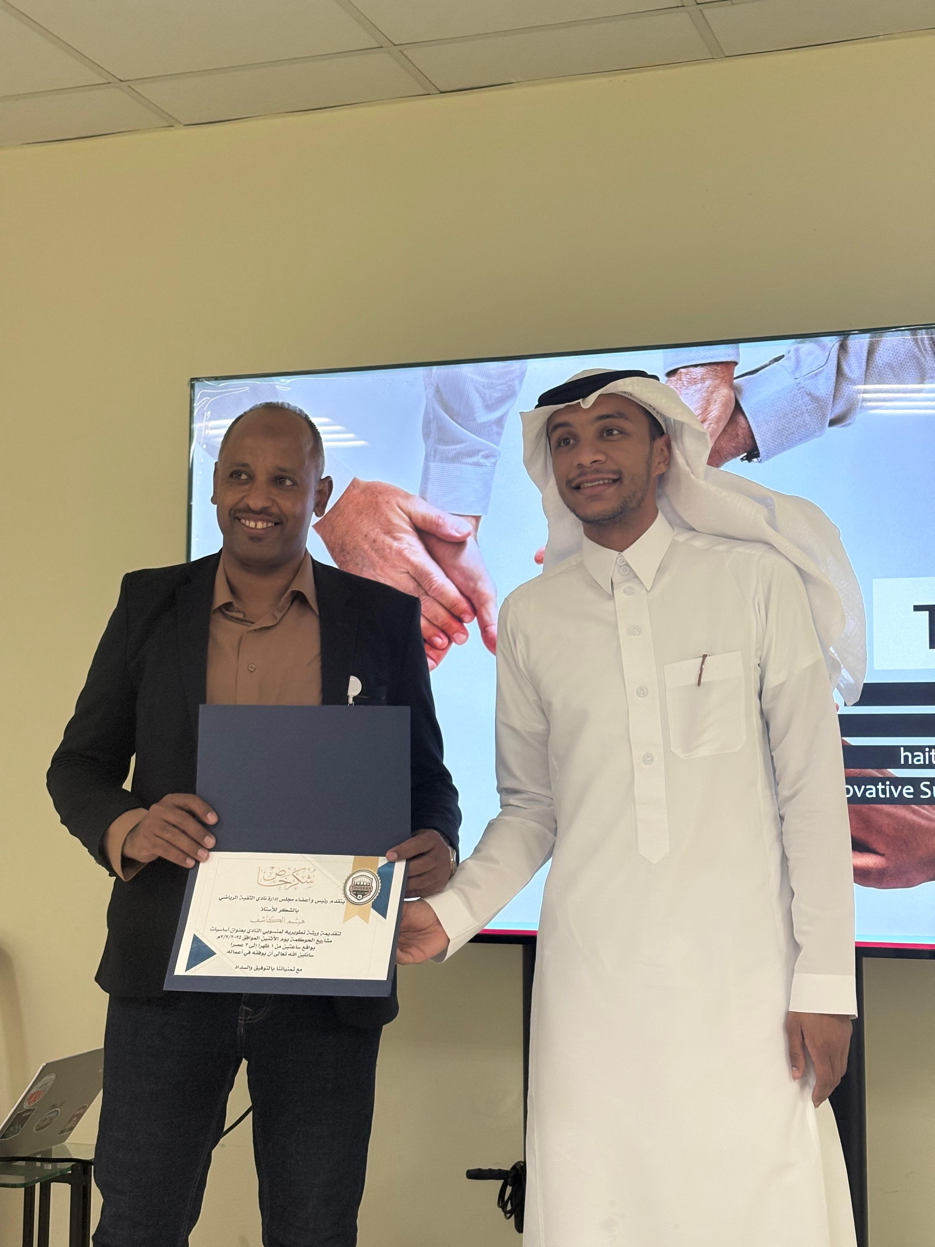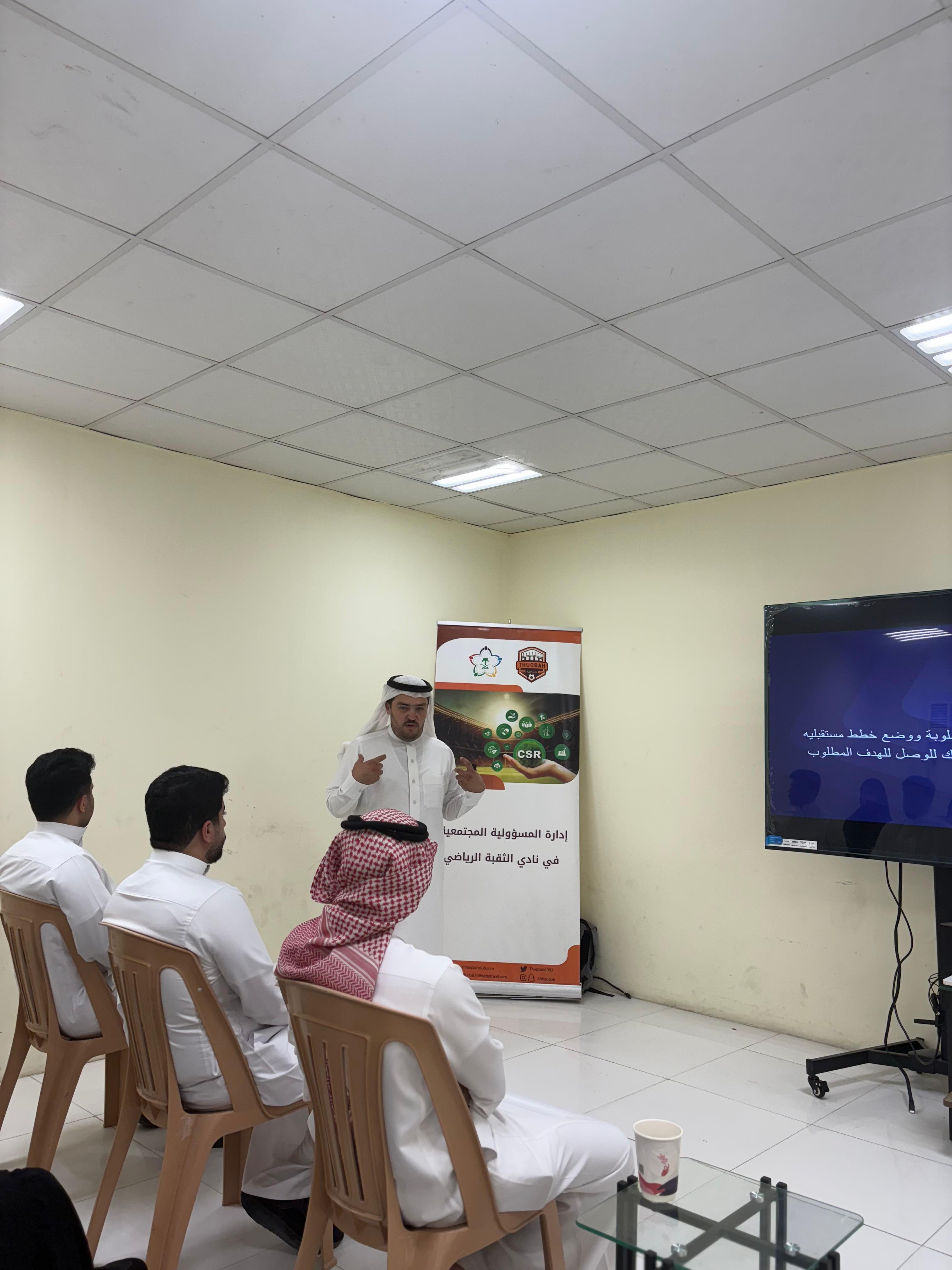 3. ورشة “الإداري الناجح” – قدمها الأستاذ حامد الصالح، وهدفت إلى تطوير المهارات الإدارية والقيادية للكوادر العاملة، ورفع كفاءتهم في التعامل مع تحديات بيئة العمل الرياضية.