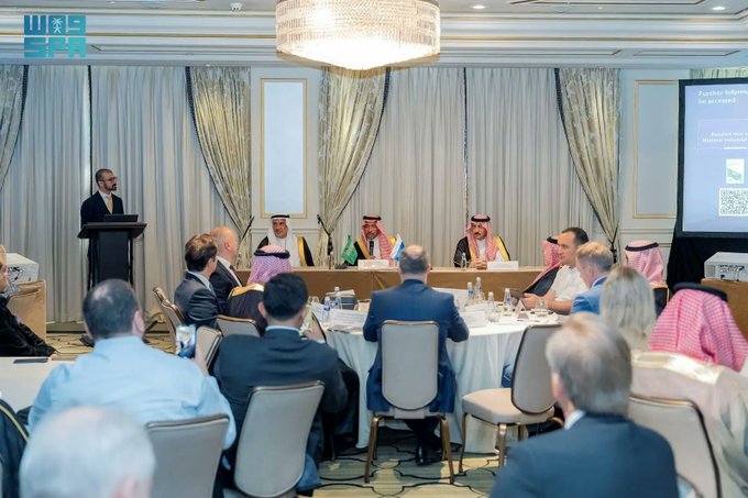 رأس معالي وزير الصناعة والثروة المعدنية الأستاذ بندر بن إبراهيم الخريف، اجتماع الطاولة المستديرة مع ممثلي القطاع الخاص الروسي في العاصمة موسكو، الذي ناقش تعزيز الشراكات الاستثمارية بين الجانبين في قطاعي الصناعة والتعدين، واستعرض أبرز الفرص الواعدة في القطاعات ذات الأولوية للإستراتيجية الوطنية للصناعة بالمملكة.