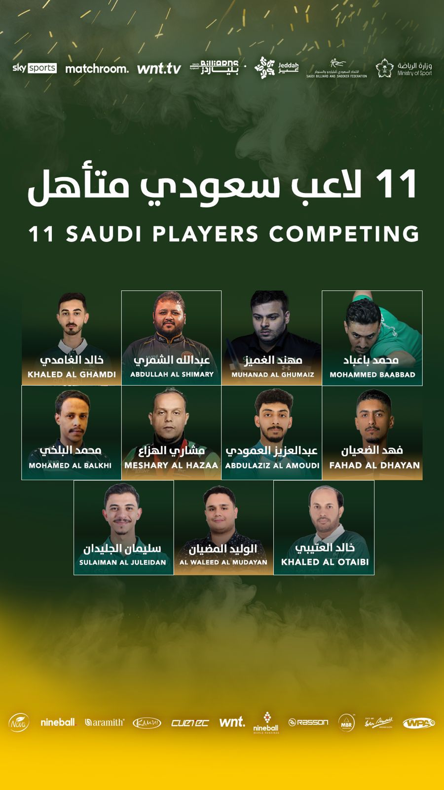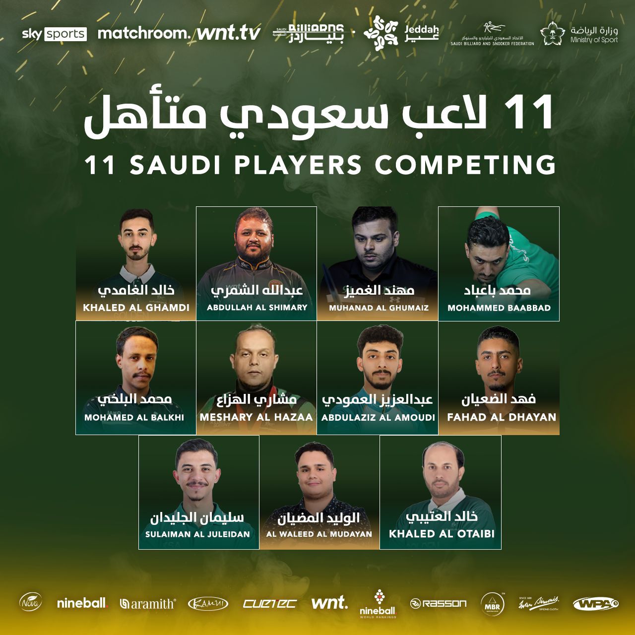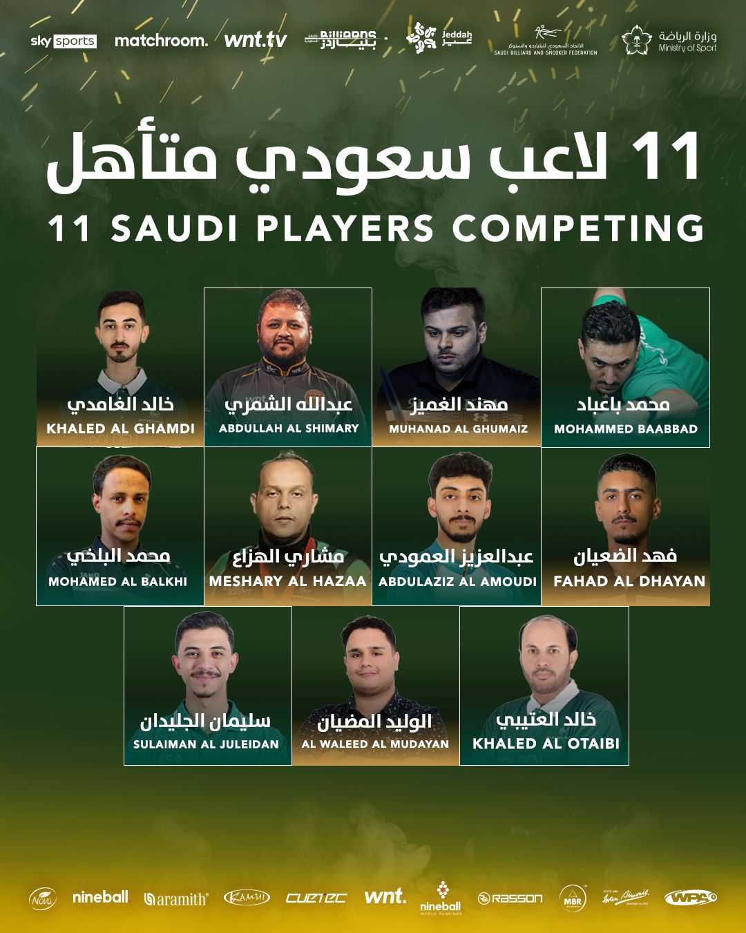وتاتي مشاركة 11 لاعباً سعودي في البطولة حسب المقاعد الممنوحة للبلد المستضيف حيث تم اختيار 5 لاعبين بشكل مباشر وتأهل 6 لاعبين من التصفيات التي أقيمت لهم تحت ادارة وإشراف الاتحاد السعودي للبلياردو والسنوكر وشهدت مشاركة اكثر من 150 لاعباً .