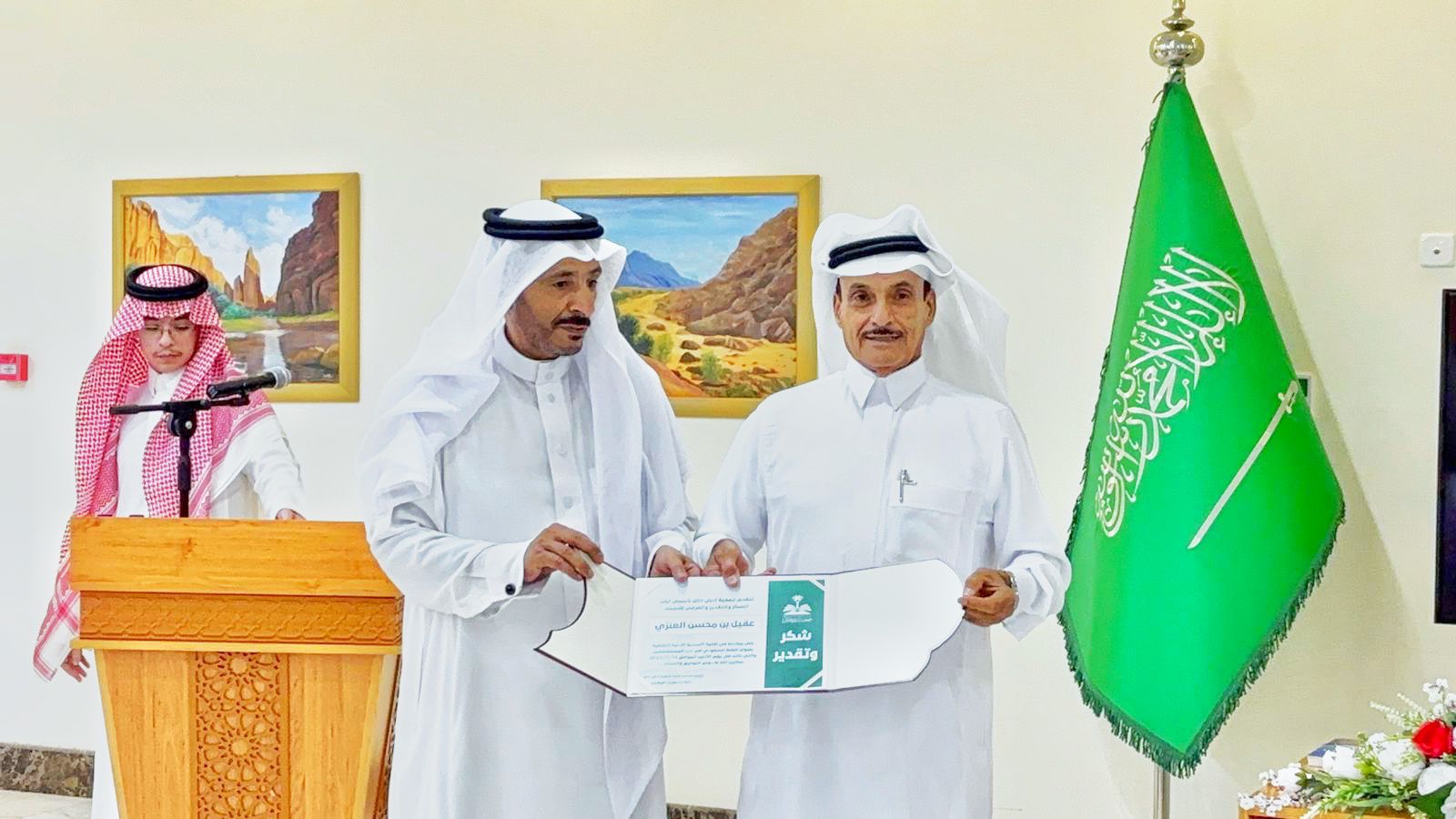 واختتم العنزي حديثه قائلاً: بأنّ مذكرات الجيولوجيين الأوائل والمهندسين وصفت رحلاتهم واكتشافاتهم بلغة أدبية وإنسانية، ساهمت في بناء جسور معرفية بين الشعوب، وفي ختام الأمسية كرمت الجمعية المشاركين، والتقطت الصورة التذكارية مع الحضور .