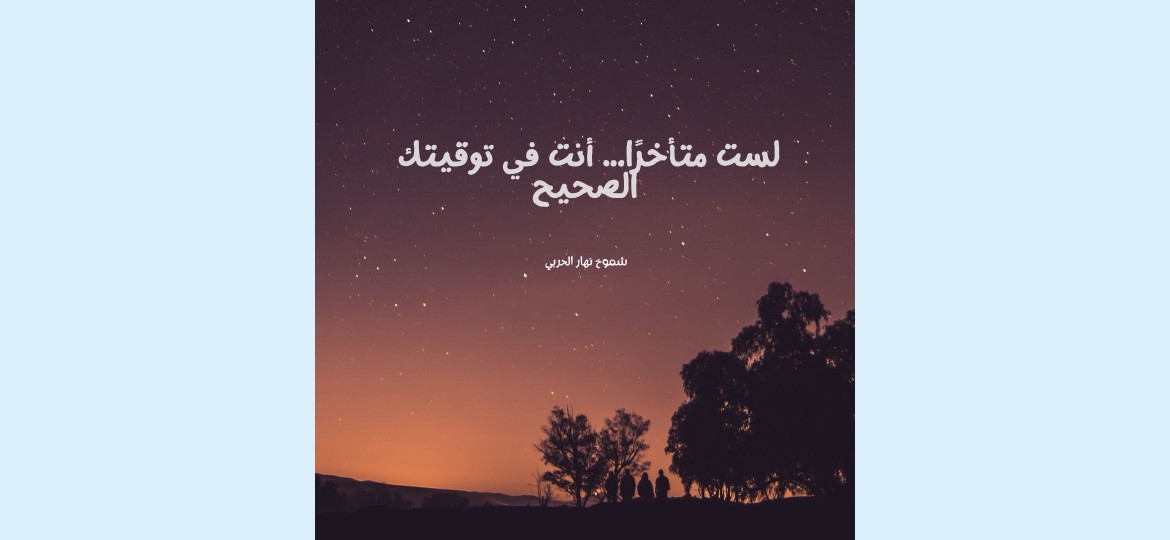 لكن الحقيقة التي يغفل عنها الكثيرون: أنك لست متأخرًا، بل تمضي في توقيتك الدقيق الذي كُتب لك وحدك.