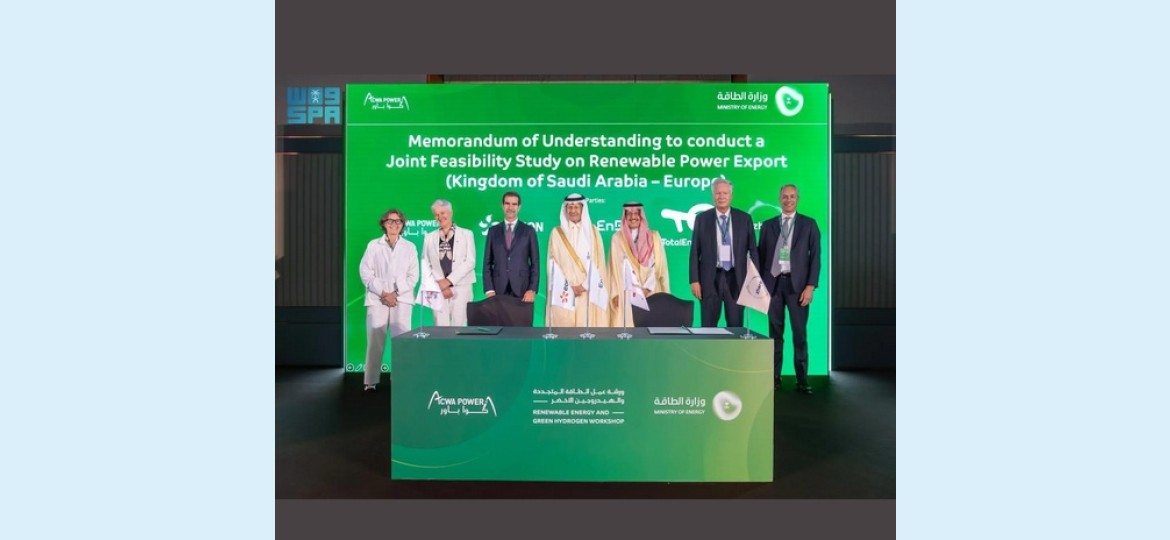 بحضور صاحب السمو الملكي الأمير عبدالعزيز بن سلمان بن عبدالعزيز وزير الطاقة، جرى اليوم، في الرياض، توقيع عدد من الاتفاقيات ومذكرات التفاهم بين شركة "أكوا باور" وعدد من الشركاء الدوليين، وذلك لتطوير منظومة متكاملة لتصدير الطاقة المتجددة والهيدروجين الأخضر من المملكة العربية السعودية إلى القارة الأوروبية.