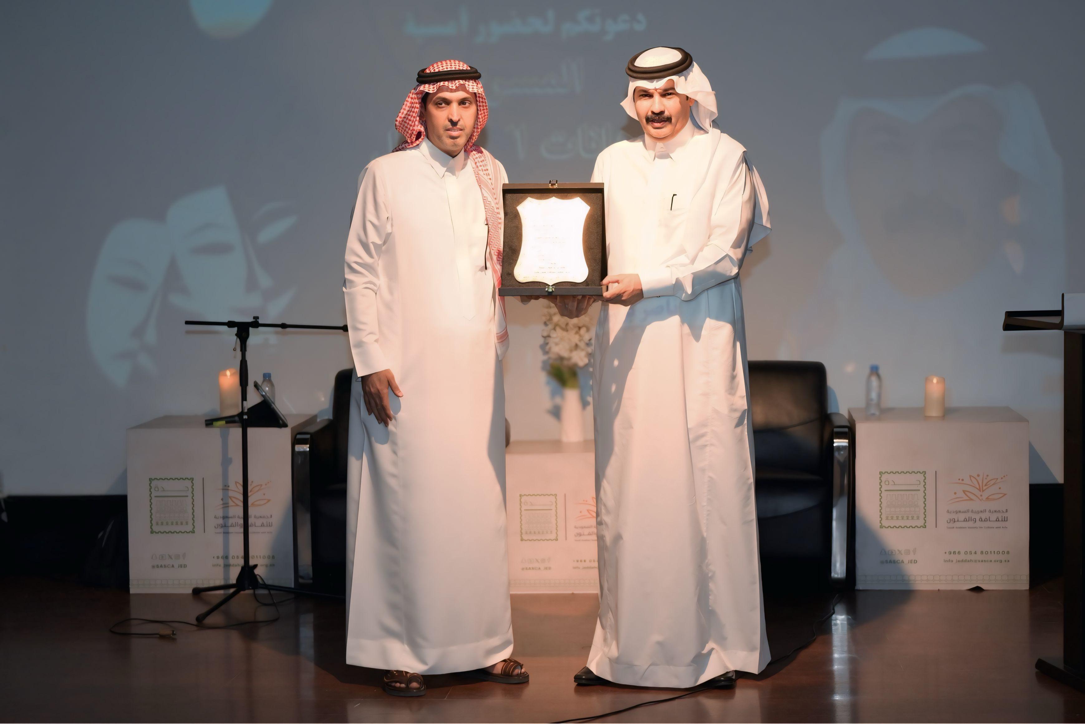 وفي ختام اللقاء، عبّر مدير الجمعية الأستاذ محمد آل صبيح عن شكره وتقديره للحضور، مثمنًا مشاركة الناقد ناصر العمري، ومشيدًا بما قدّمه من تشخيص دقيق لحالة المسرح السعودي، قبل أن يقدّم له درع التكريم، متمنيًا له مزيدًا من التوفيق والنجاح.