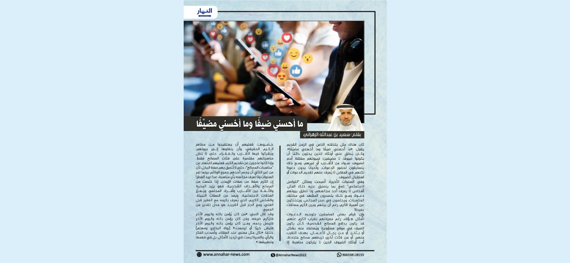 كان هناك مثل يتناقله الناس في الزمن القديم يقول: "ما أحسني ضيفًا وما أخسني مضيِّفًا".