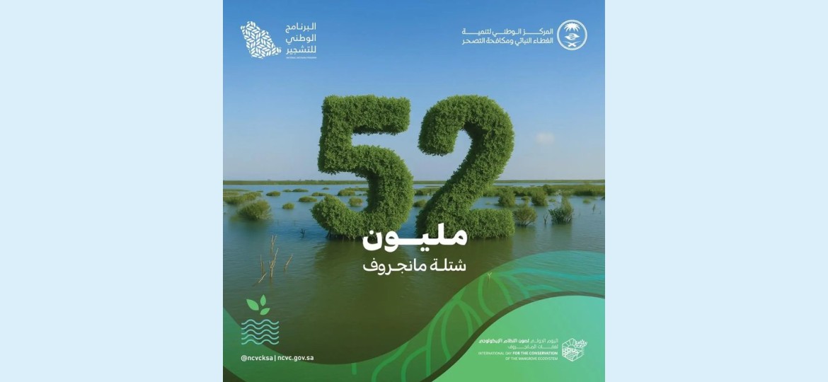 في خطوة نوعية لتعزيز النظم البيئية الساحلية واستعادة توازنها، أعلن المركز الوطني لتنمية الغطاء النباتي ومكافحة التصحر عن زراعة 52 مليون شجرة مانجروف على سواحل المملكة، وذلك ضمن جهود البرنامج الوطني للتشجير، بالتعاون مع الشركاء من مختلف القطاعات الحكومية والخاصة وغير الربحية، دعمًا لمستهدفات مبادرة "السعودية الخضراء" التي تستهدف زراعة 100 مليون شتلة مانجروف بحلول عام 2030.