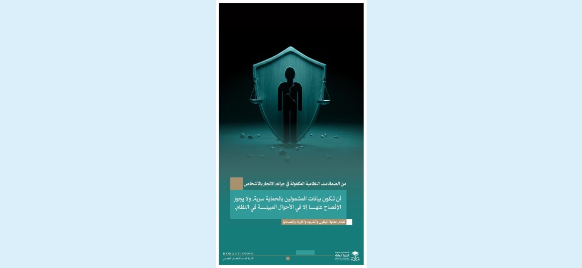 أكدت النيابة العامة في المملكة العربية السعودية حرصها على ضمان حماية المبلغين والشهود والخبراء والضحايا في قضايا الاتجار بالأشخاص، مشددة على أن النظام يكفل سرية بياناتهم وعدم الإفصاح عنها إلا في الحالات المنصوص عليها قانونياً.