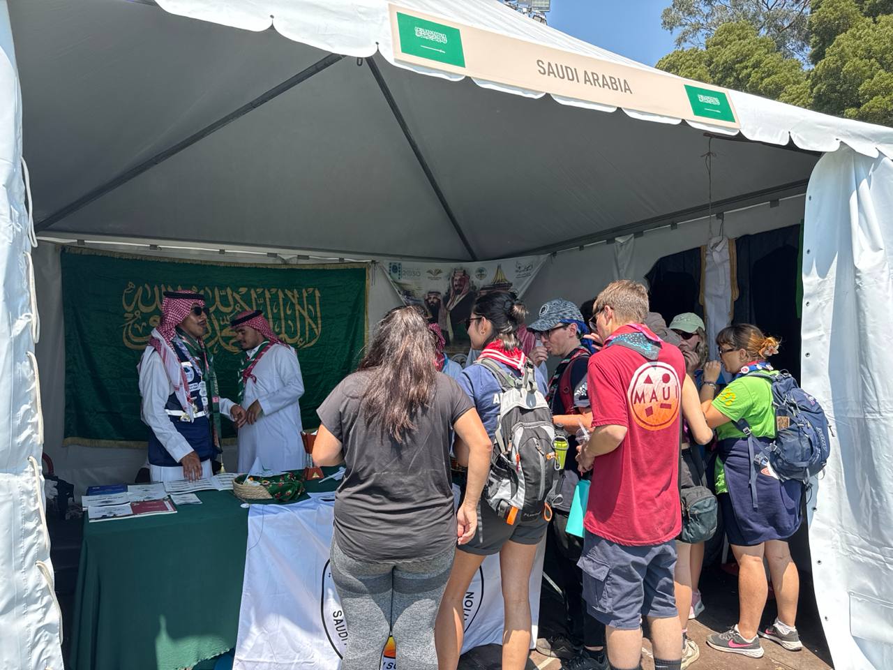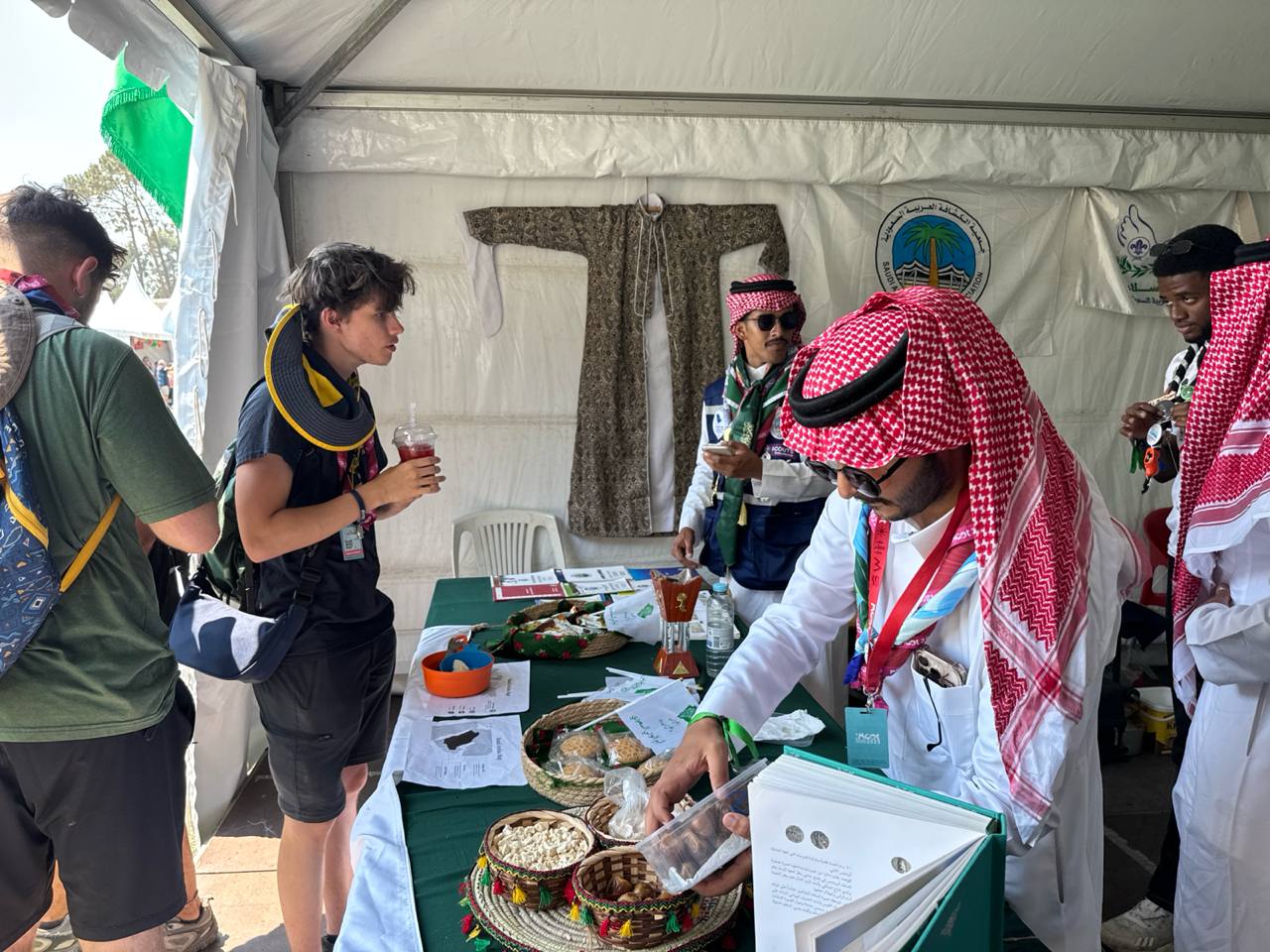 وقد حرص الوفد الكشفي السعودي على تقديم تجربة ثقافية متنوعة داخل خيمته؛ حيث يستقبل الزوّار بالقهوة السعودية والتمور من إنتاج المملكة، إلى جانب تذوق عدد من الأطباق الشعبية، والاطلاع على عروض تعريفية بالمعالم التنموية، والتقاليد الاجتماعية، والعملات النقدية، وأبرز الآثار في المملكة، وسط تفاعل كبير من المشاركين الذين يختتمون زيارتهم بتسجيل انطباعاتهم.