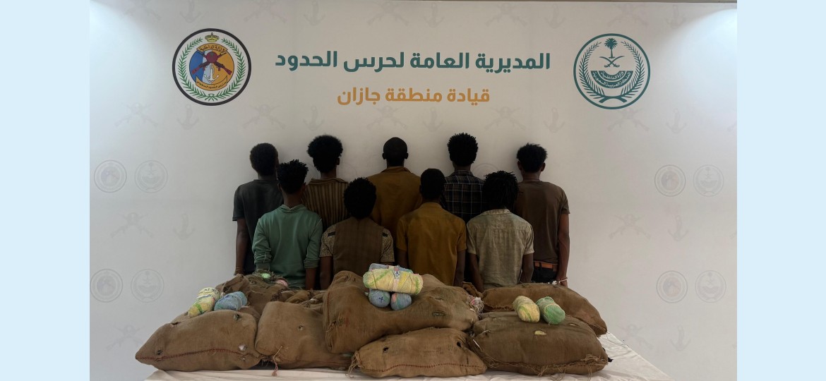 قبضت الدوريات البرية لحرس الحدود في قطاع الدائر بمنطقة جازان على (9) مخالفين لنظام أمن الحدود من الجنسية الإثيوبية، لتهريبهم (180) كيلوجرامًا من نبات القات المخدر، وجرى استكمال الإجراءات النظامية الأولية بحقهم، وتسليمهم والمضبوطات لجهة الاختصاص.