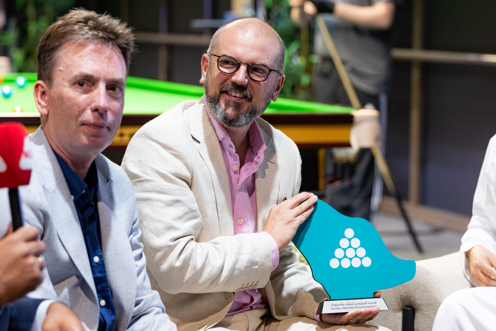 وجاء ذلك خلال اللقاء الذي جمع رئيس الاتحاد السعودي للبليارد والسنوكر نايف الجعويني مع الرئيس التنفيذي لجولة السنوكر العالمية سايمون براونيل و بطل العالم السابق في السنوكر كين دوهرتي و لاعب السنوكر السعودي زياد القبّاني .