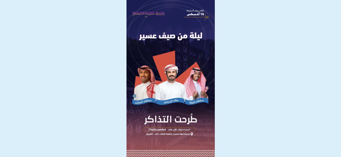 يستعد مسرح جامعة الملك خالد بقرير لاستقبال أمسية فنية مميزة مساء يوم الجمعة الموافق 15 أغسطس، وذلك ضمن فعاليات "ليلة من صيف عسير".