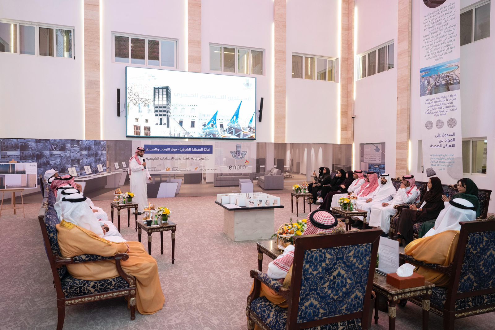 زار معالي نائب وزير البلديات والإسكان، الأستاذ إيهاب بن غازي حشاني، امس الأربعاء 13 أغسطس 2025م، مقر أمانة المنطقة الشرقية، اطلع خلالها على وحدة العمارة السعودية باستديو التصميم الحضري، التي أطلقتها الأمانة لتعزيز الهوية العمرانية، ورفع جودة المشهد الحضري، حيث سيبدأ تفعيلها في 1 نوفمبر 2025م، كما اطلع على مركز الأزمات والمخاطر، حيث قامت الأمانة بالانتقال إلى المقر المؤقت، المجهز بكافة الأجهزة، التي تضمن استمرارية الخدمات خلال فترة إعادة تأهيل الموقع الرئيسي.