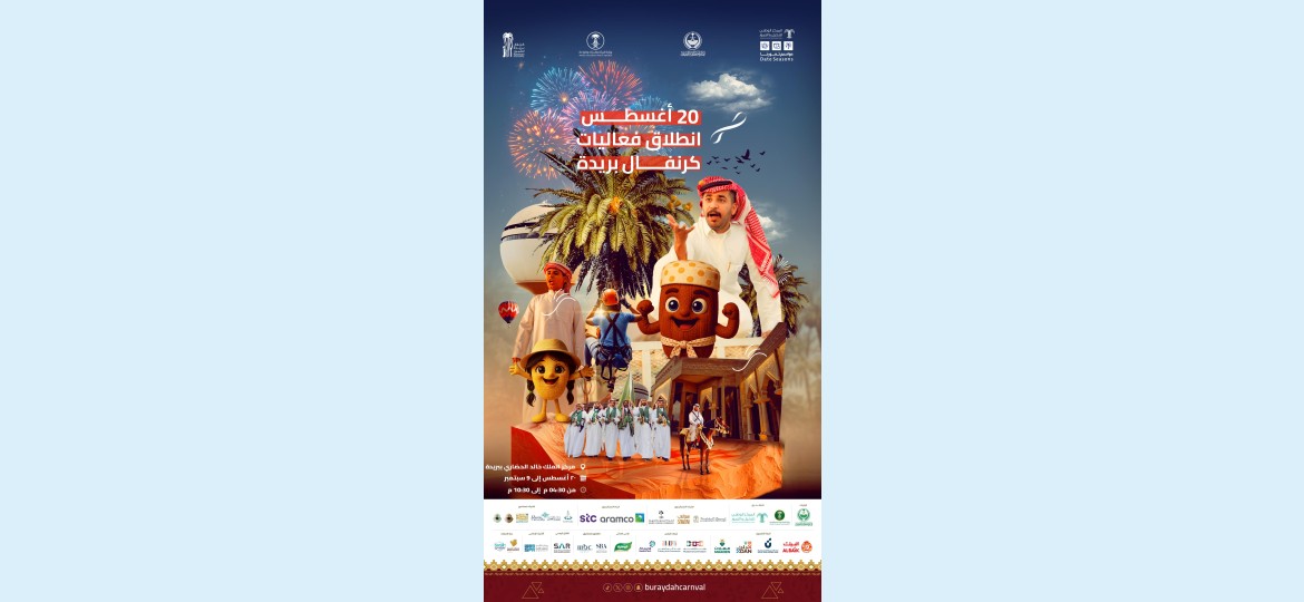 يدشن كرنفال بريدة للتمور 30 فعالية متنوعة على مدار عشرون يوما بدءا من 20 اغسطس الجاري حتى 9 سبتمبر المقبل، في مركز الملك خالد الحضاري ببريدة، وتهدف الفعاليات إلى توفير تجربة ترفيهية وممتعة للحضور من خلال أنشطة وعروض زراعية وتجارية وفنية وثقافية، إضافة إلى التعريف بتراث منطقة القصيم، وتنشيط السياحة الداخلية خلال فترة الكرنفال الذي يختتم في التاسع من أكتوبر المقبل بتنظيم من المركز الوطني للنخيل والتمور، ووزارة البيئة والمياه والزراعة، وبإشراف من إمارة منطقة القصيم.