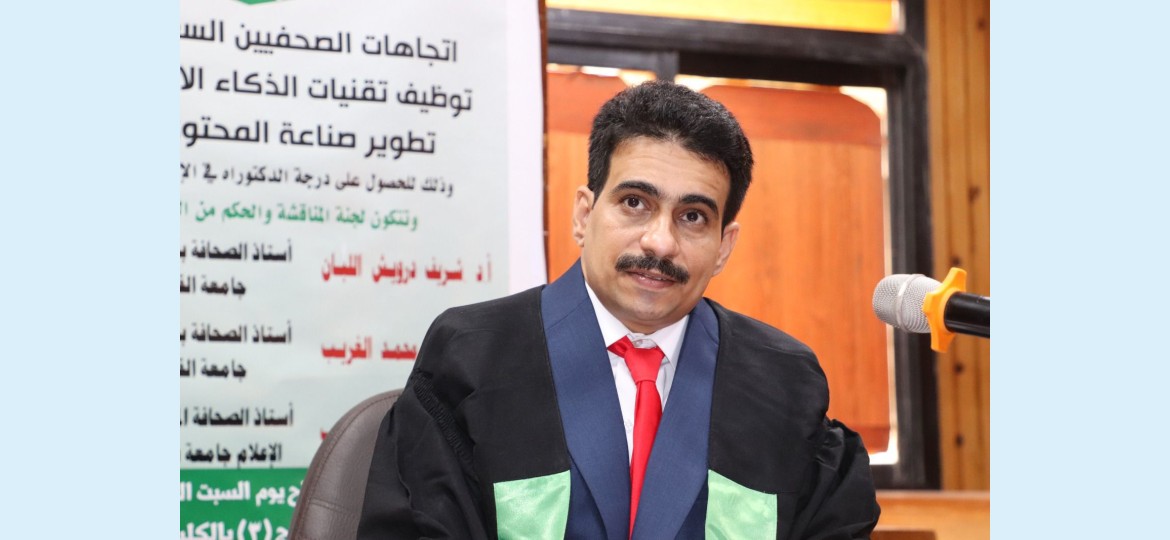وذلك عن رسالتة التي حملت عنوان "اتجاهات الصحفيين السعوديين إزاء توظيف تقنيات الذكاء الاصطناعي في تطوير صناعة المحتوى الرقمي.