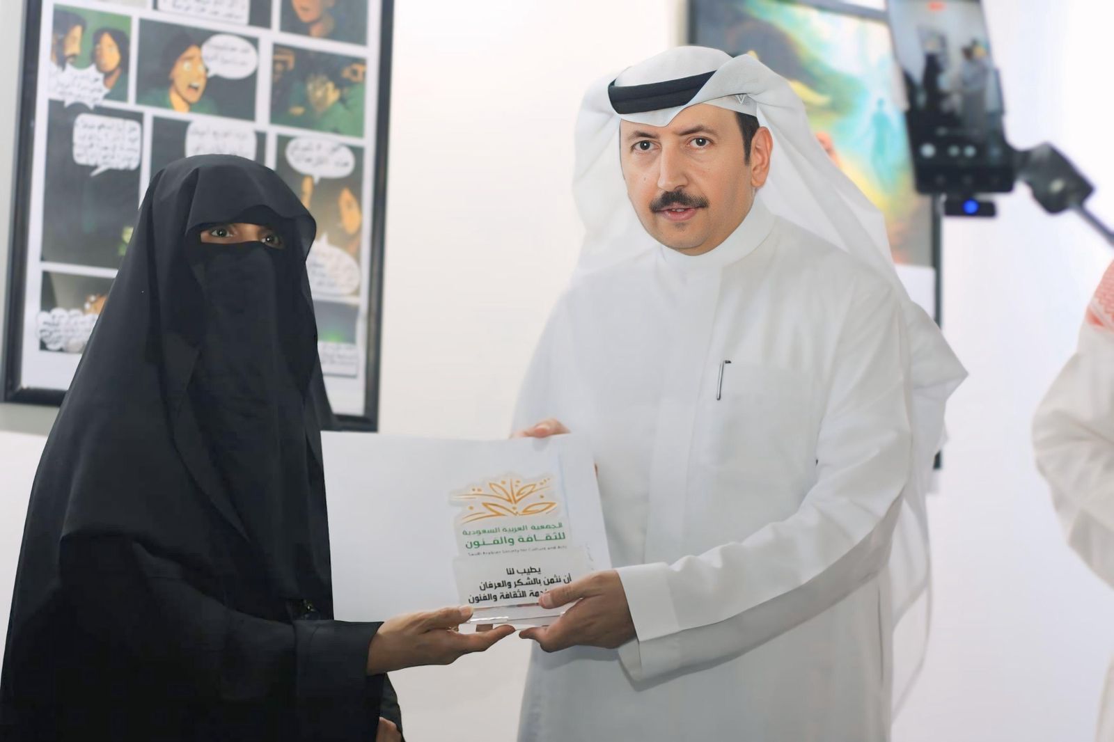 وفي ختام الاحتفال كرم مدير جمعية الثقافة والفنون بالطائف أ. فيصل الخديدي المدربات المشاركات من فريق مساحة فن، وخريجات البرنامج التدريبي والفنانات المشاركات في المعرض.