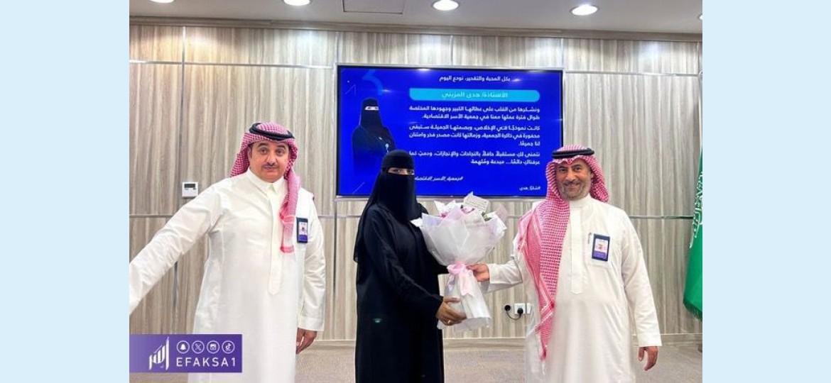 في لمسة وفاء واعتزاز، كرّمت جمعية الأسر الاقتصادية “أُسر” الأستاذة هدى بنت محمد المزيني، مسؤولة قسم الخدمة الاجتماعية في الجمعية، وذلك تقديرًا لعطائها الكبير وجهودها المخلصة التي شكّلت بصمة بارزة في مسيرة الجمعية طوال فترة عملها.