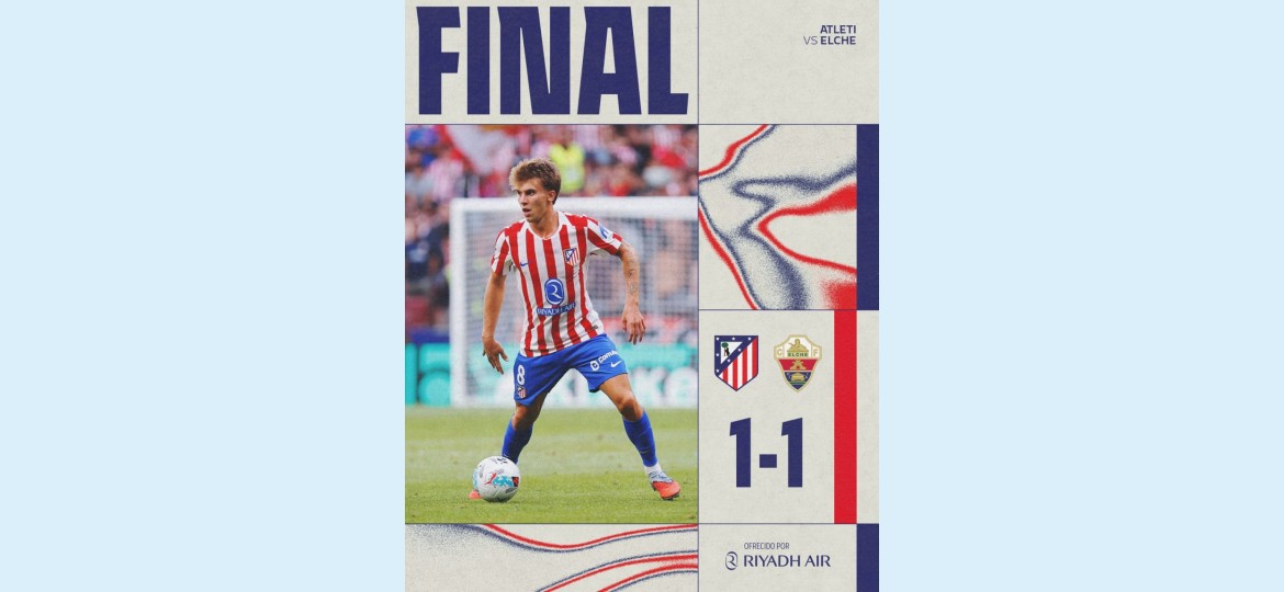 واصل أتلتيكو مدريد مسلسل نزيف النقاط في بداية مشواره في الموسم الجديد بـ"الليغا"، بتعادله إيجابيا وسط جماهيره (1-1) أمام إلتشي، الصاعد حديثاً، اليوم السبت في ثاني جولات دوري الدرجة الأولى الإسباني لكرة القدم.