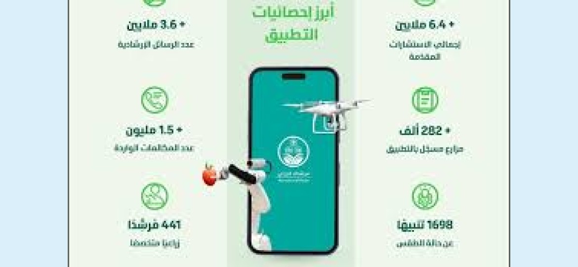 وأشارت إلى أن تطبيق "مرشدك الزراعي"، حقق العديد من المنجزات والجوائز منذ إطلاقه، وتميز بصفته واحدًا من أفضل التطبيقات الرقمية الخدمية في المنطقة؛ حيث حصل التطبيق على عدة جوائز، أبرزها، درع الحكومة الرقمية العربية كأفضل تطبيقٍ عربي، وجائزة اتحاد الأصدقاء للأمم المتحدة لتنمية الاستدامة، إضافةً إلى شهادة الآيزو للجودة، كما حقق التطبيق أرقامًا قياسية، من أبرزها تقديم أكثر من (6.4) ملايين استشارة فنية للمزارعين، كما تجاوز عدد المزارعين المسجلين في التطبيق (282) ألف مزارع، إلى جانب (441) مرشدًا متخصصًا، مبينةً أن التطبيق وردت إليه خلال الفترة المذكورة، أكثر من (1.5) مليون مكالمة صوتية، فيما تجاوز إجمالي عدد الرسائل النصية الإرشادية (3.6) ملايين رسالة، فيما بلغ عدد الاستشارات المقدمة لقسم اسأل عن نبات وآفة، أكثر من مليون استشارة، كما قدّم التطبيق للمزارعين نحو (1700) تنبيه عن حالة الطقس بحسب ما يعلن من المركز الوطني للأرصاد، و(687) حلقة بث مباشر إرشادية، إضافةً إلى (7945) خبرًا ومحتوىً إرشاديًا منشورًا، و (337) تحليلًا للتربة والمياه.