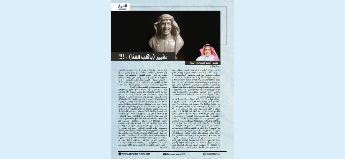 كما أرغب في أن أُضيف لفكرة صديقي الغالي ( أبو قراطيس ) عن التغيير، عمقاً آخر، يتمثلُ في المرحلة التالية لتنفيذ قرار التغيير مباشرة، فهذه المرحلة هي أخطر مرحلة على الإطلاق في التغيير، وهي ماقد يُسميها البعض بـ ( جحيم التغيير ) ..!!