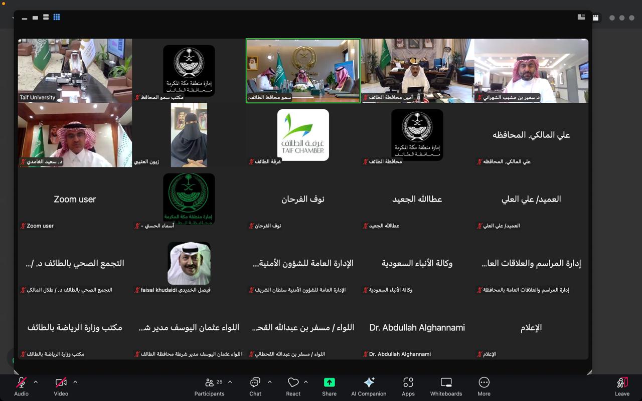 ناقش صاحب السمو الملكي الأمير سعود بن نهار بن سعود بن عبدالعزيز محافظ الطائف اليوم، عبر -الاتصال المرئي- اجتماعًا بحضور جميع الجهات ذات العلاقة؛ لمناقشة استعدادات المحافظة اللازمة للاحتفال باليوم الوطني السعودي الـ 95.