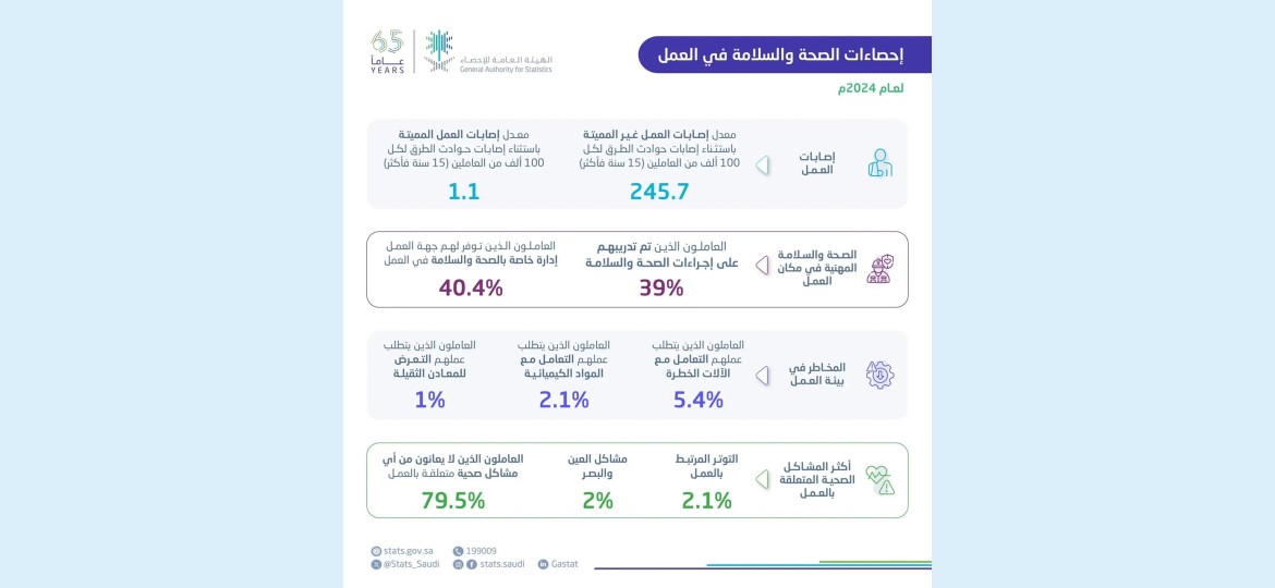 أصدرت الهيئة العامة للإحصاء اليوم نتائج نشرة إحصاءات الصحة والسلامة في العمل 2024م.