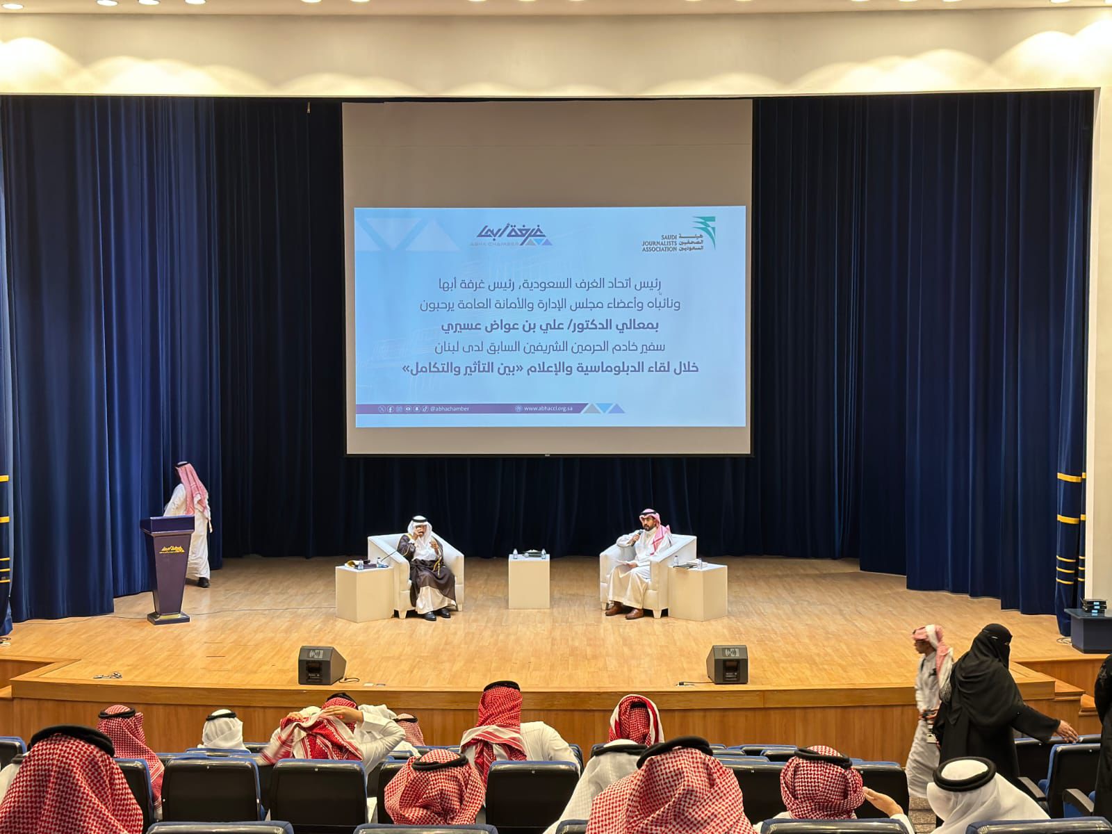 جاء ذلك خلال اللقاء الذي استضافه فرع هيئة الصحفيين في منطقة عسير بالتعاون مع غرفه أبها، وقدمه الإعلامي عبدالله عبيد، في لقاء بعنوان “ الدبلوماسية والإعلام بين التأثير والتكامل ”،والذي أُقيم على مسرح غرفة أبها بحضور عدد كبير من الأكاديميين ومسؤولي الغرفة والإعلاميين والمهتمين.