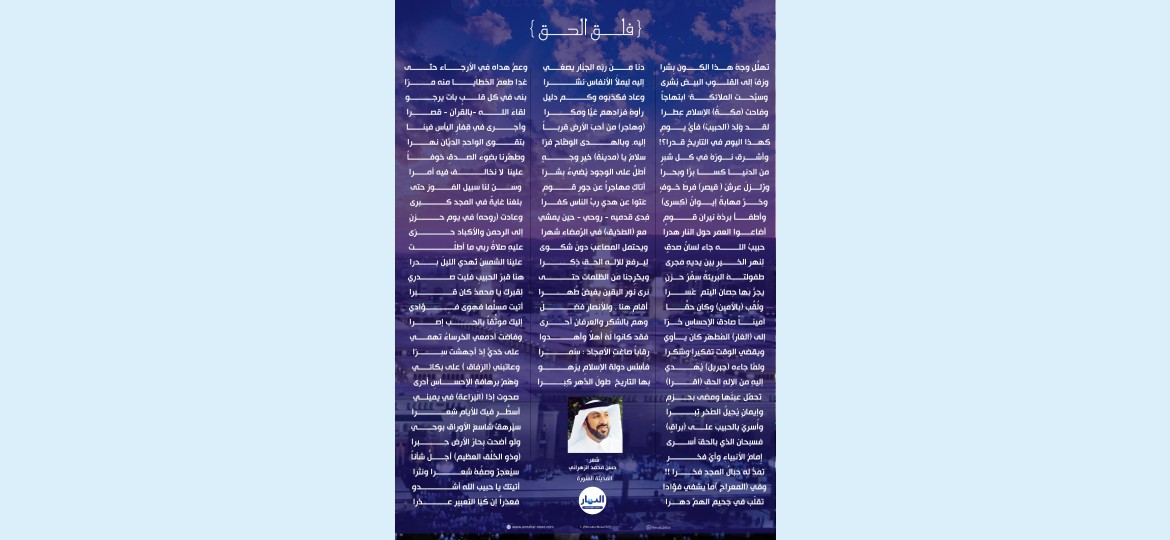 وهي قصيدة تنبض بالإيمان وتفيض بالحب الصادق، لتجسد عظمة الرسالة وخلود الذكرى، وتنشرها صحيفة النهار السعودية لقرّائها الكرام.