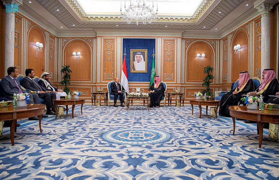 اجتمع صاحب السمو الملكي الأمير محمد بن سلمان بن عبدالعزيز آل سعود ولي العهد رئيس مجلس الوزراء، في الديوان الملكي بقصر اليمامة اليوم، مع فخامة رئيس مجلس القيادة الرئاسي اليمني الدكتور رشاد العليمي، وأعضاء المجلس.