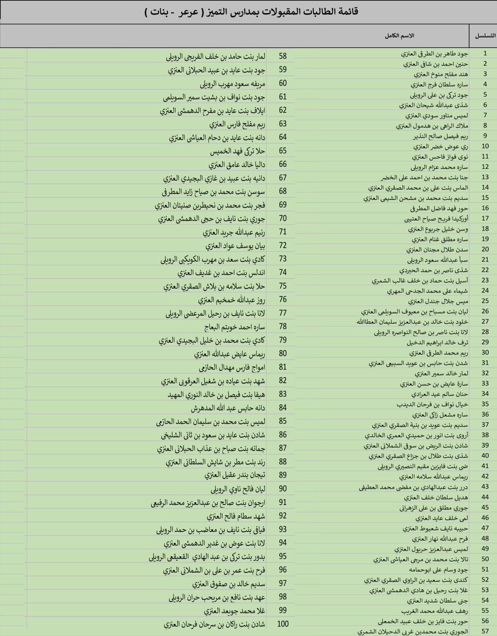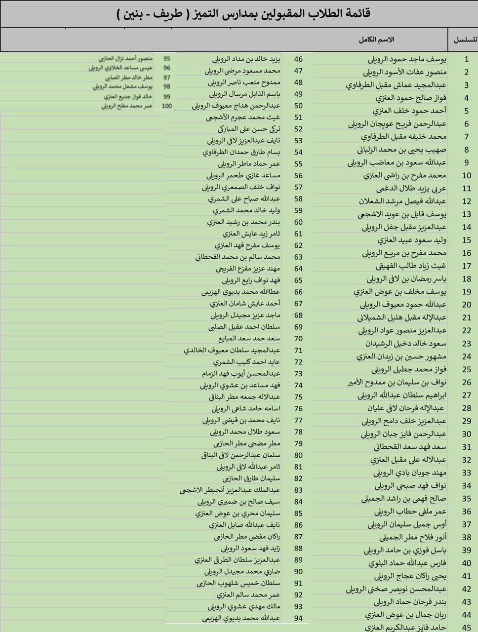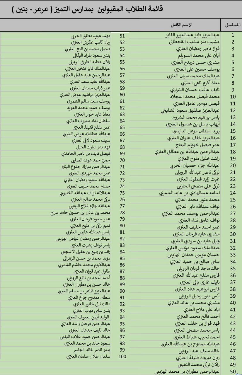 أعلنت الإدارة العامة للتعليم بمنطقة الحدود الشمالية أسماء الطلاب والطالبات المقبولين بمدارس التميز العلمي بعرعر