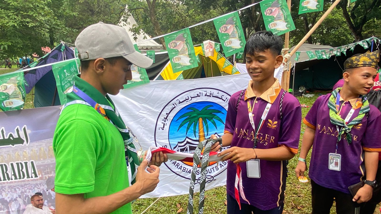 شهدت مشاركة جمعية الكشافة العربية السعودية في الجامبوري العالمي للكشاف المسلم 2025، الذي تستضيفه العاصمة الإندونيسية جاكرتا بالمعسكر الكشفي الوطني في "سيبوبور"، إقبالاً لافتاً من الوفود الكشفية العالمية على تبادل الهدايا التذكارية مع الكشافة السعوديين.