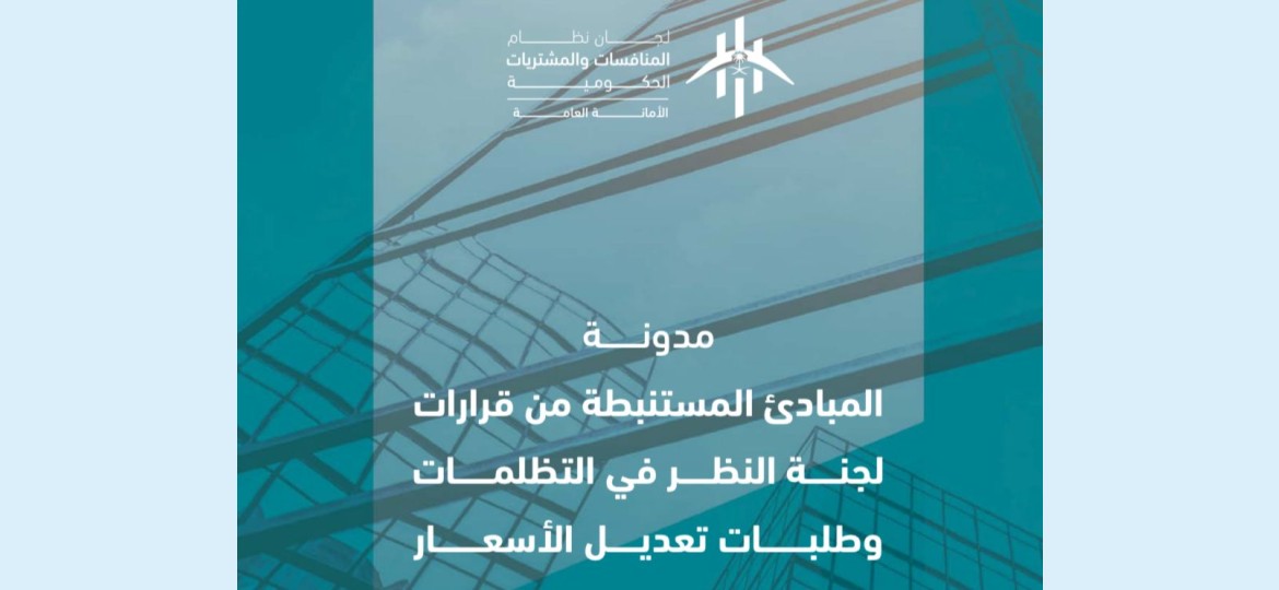 أطلقت  الأمانة العامة للجان  نظام المنافسات والمشتريات الحكومية مدونة جديدة تُعنى بجمع وتوثيق المبادئ المستنبطة من قرارات لجنة النظر في التظلّمات وطلبات تعديل الأسعار.