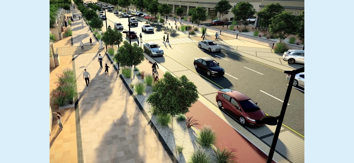 ويتضمن تنفيذ مسارات مخصصة للمشاة بطول 14 كم، ومسارات مخصصة للدراجات بطول يزيد عن 9 كم، فضلًا عن زراعة 480 ألف شجرة وشجيرة، إلى جانب توفير ساحات حضرية متعددة وتهيئة 4000 موقف سيارة.