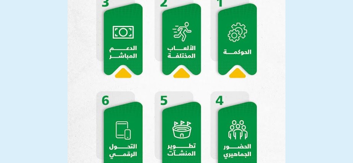 وتركّز الاستراتيجية على تحفيز الأندية لتحسين نتائجها من خلال نموذج تمويلي قائم على الأداء، يشمل ست مبادرات رئيسية: الحوكمة، والألعاب المختلفة، والدعم المباشر، والحضور الجماهيري، وتطوير المنشآت، والتحول الرقمي؛ إذ ساهمت تلك البرامج في تعزيز الاحترافية ورفع جودة البنية التحتية الرياضية، فيما تُعد حوكمة الأندية والتصنيف الإداري الركيزة الأهم لتحقيق الكفاءة والشفافية داخل المنظومات الإدارية.
