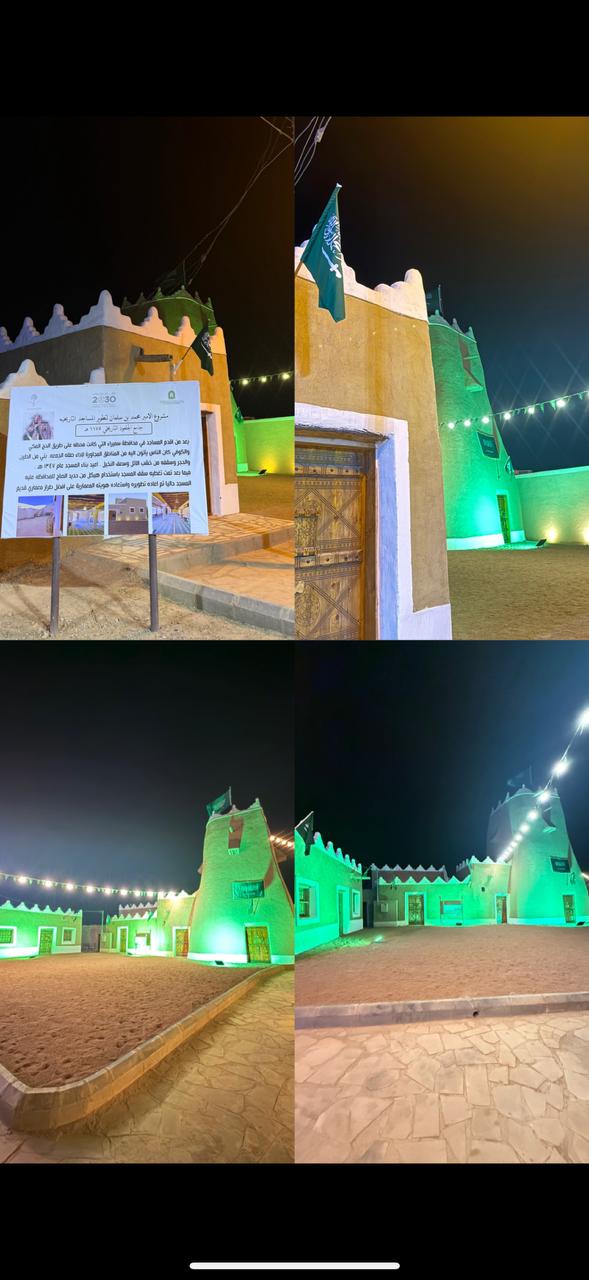 اكتسى قصر الجلعود التاريخي بمحافظة سميراء في منطقة حائل باللون الأخضر، تزامناً مع احتفالات المملكة باليوم الوطني السعودي الـ 95، في مشهد يعكس روح الانتماء والفخر بالوطن.