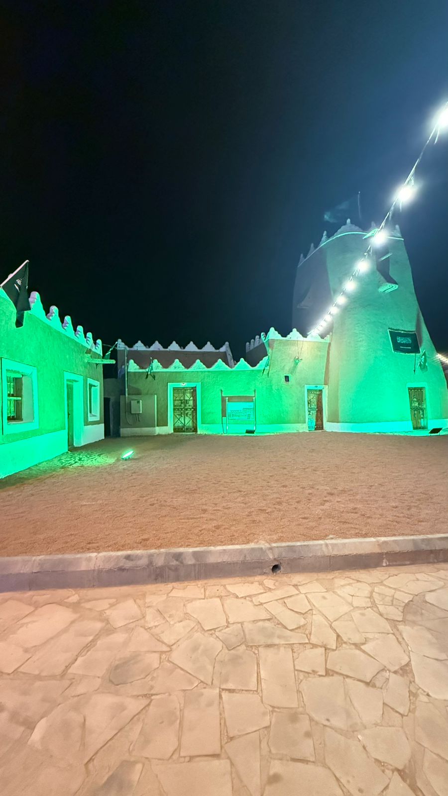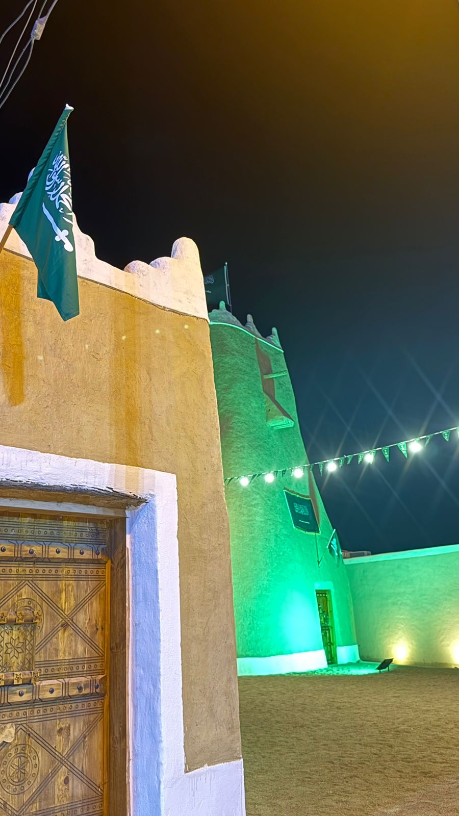 ويعد القصر من أبرز المعالم التاريخية بالمحافظة، حيث يمثل إرثاً معمارياً شامخاً يروي جانباً من تاريخ المنطقة، وجاءت إضاءته باللون الأخضر لتجسّد معاني الوحدة والاعتزاز بالهوية الوطنية تحت راية المملكة.